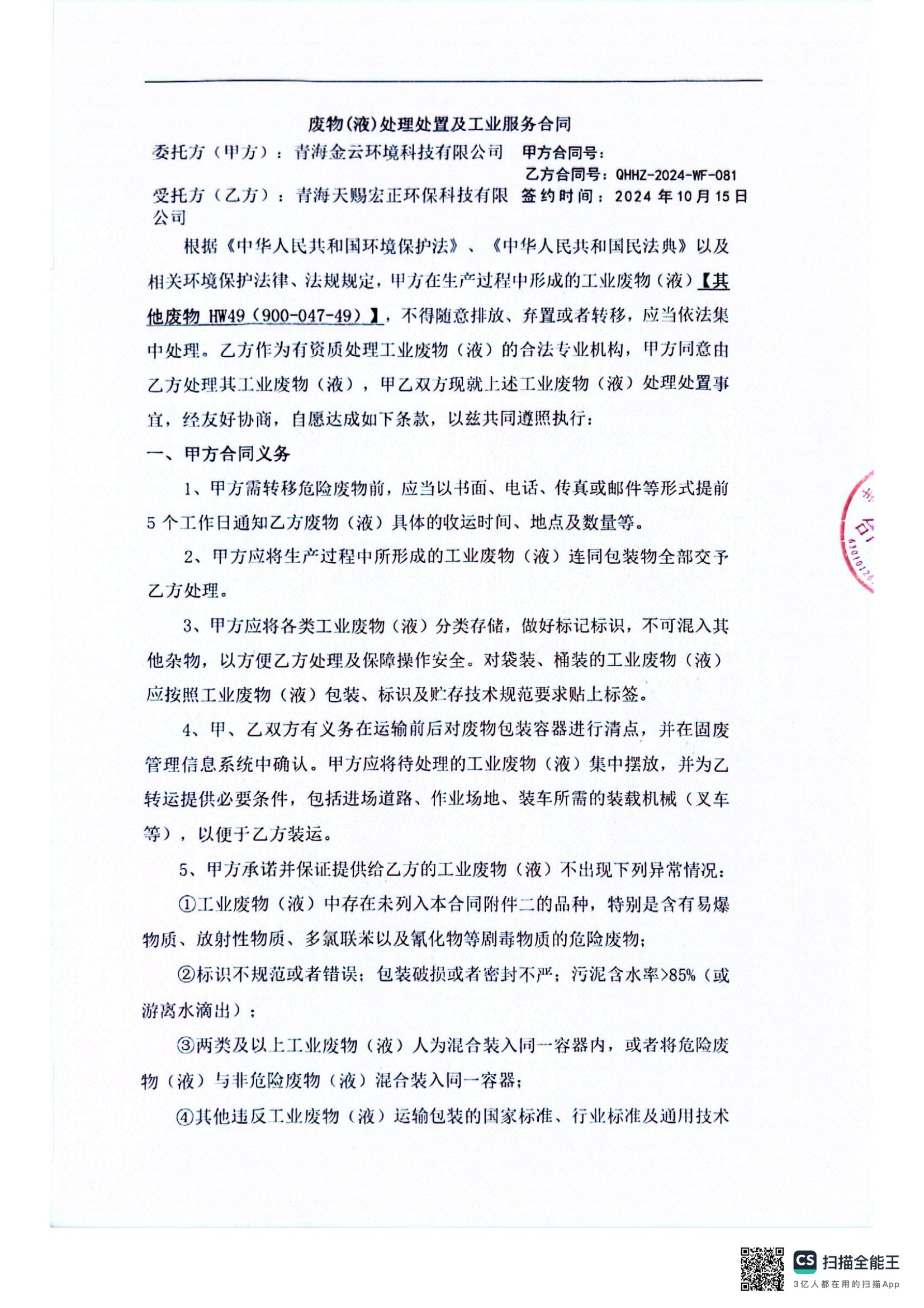 危廢處置合同發(fā)布日期:(2025/1/2) 點擊次數(shù):1474 |