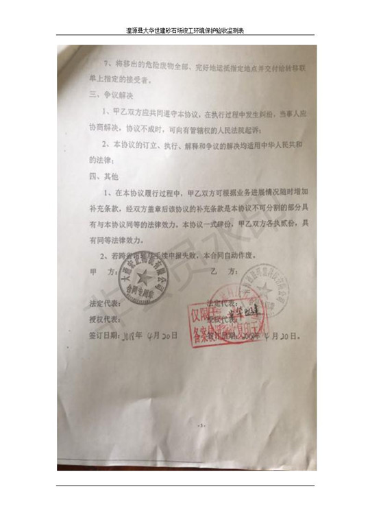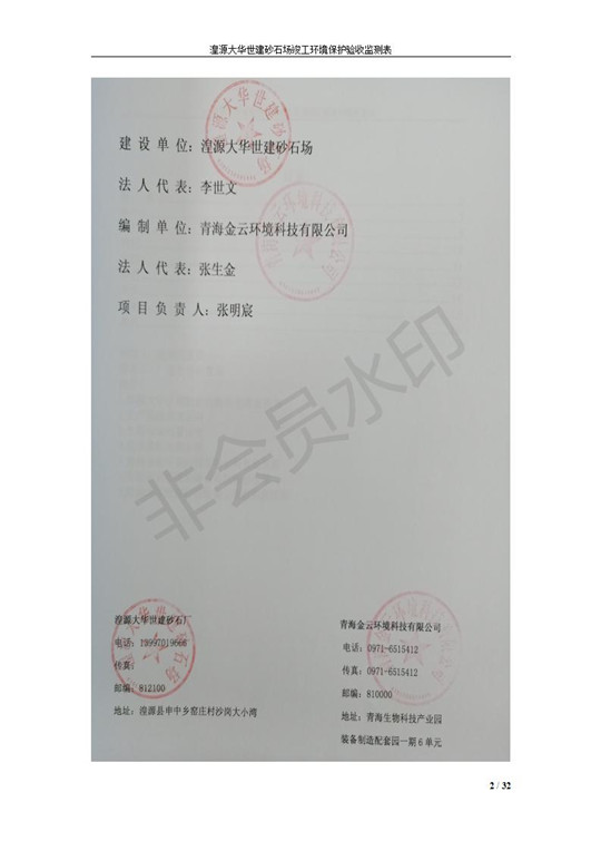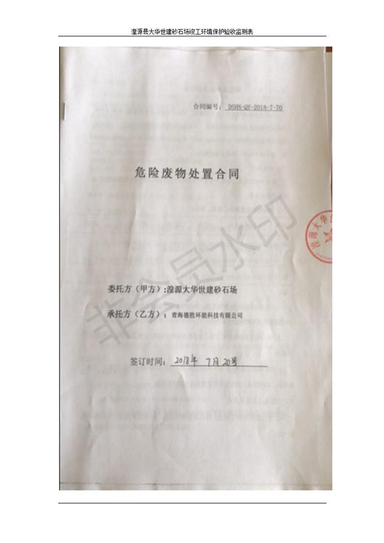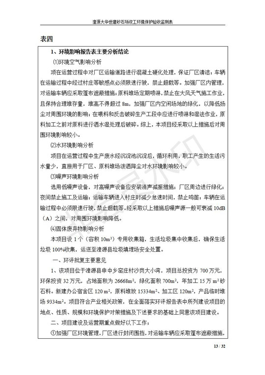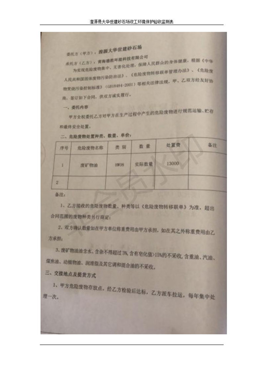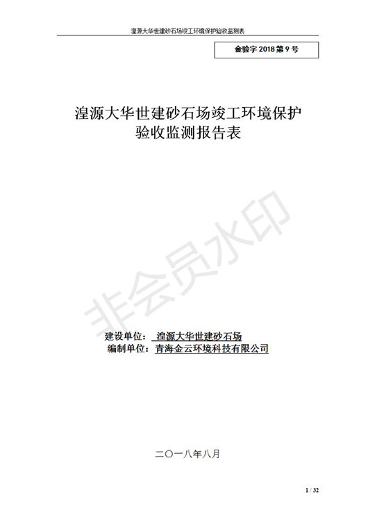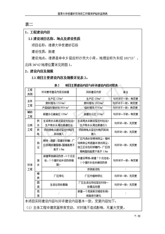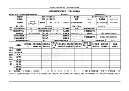 根據(jù)中華人民共和國(guó)國(guó)務(wù)院令第253號(hào)《建設(shè)項(xiàng)目環(huán)境保護(hù)管理?xiàng)l例》(中華人民共和國(guó)國(guó)務(wù)院令第682號(hào)《國(guó)務(wù)院關(guān)于修改〈建設(shè)項(xiàng)目環(huán)境保護(hù)管理?xiàng)l例〉的決定》和《建設(shè)項(xiàng)目竣工環(huán)境保護(hù)驗(yàn)收暫行辦法》,嚴(yán)格依照有關(guān)法律法規(guī),建設(shè)項(xiàng)目環(huán)境保護(hù)設(shè)施驗(yàn)收技術(shù)規(guī)范,本項(xiàng)目環(huán)評(píng)報(bào)告表和環(huán)保審批部門審批意見以及企業(yè)自行驗(yàn)收相關(guān)要求等對(duì)本項(xiàng)目進(jìn)行驗(yàn)收,本項(xiàng)目符合環(huán)保驗(yàn)收條件,可以通過(guò)環(huán)保驗(yàn)收。 湟源大華世建砂石場(chǎng)建設(shè)項(xiàng)目竣工環(huán)境保護(hù)驗(yàn)收意見.