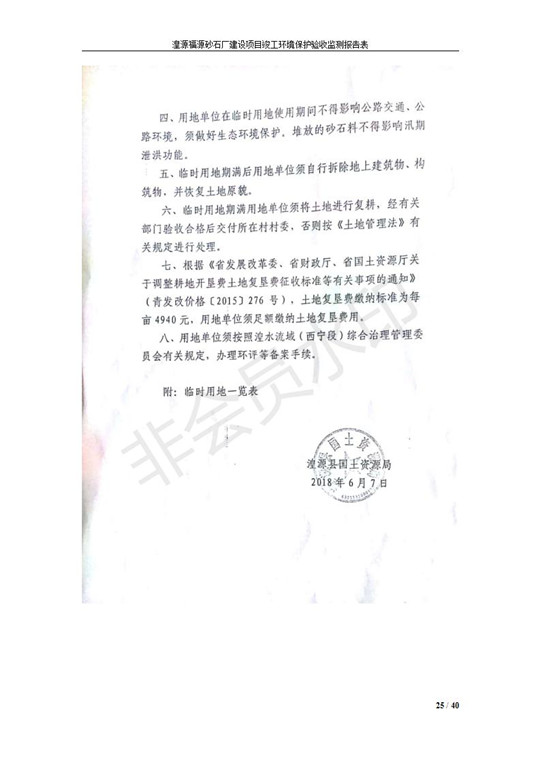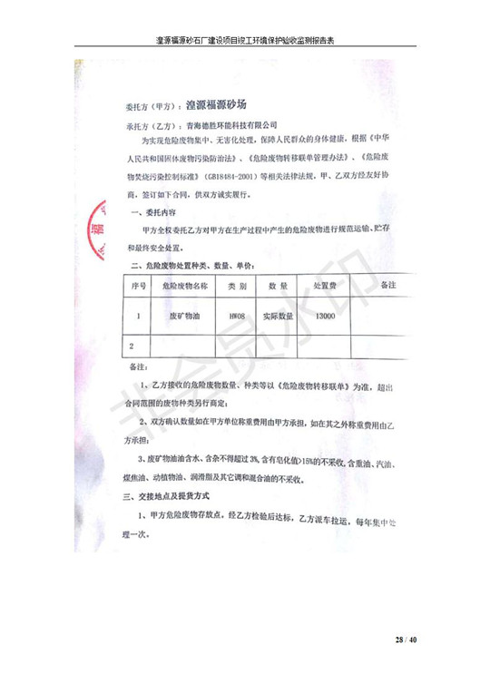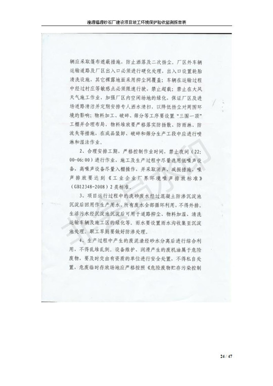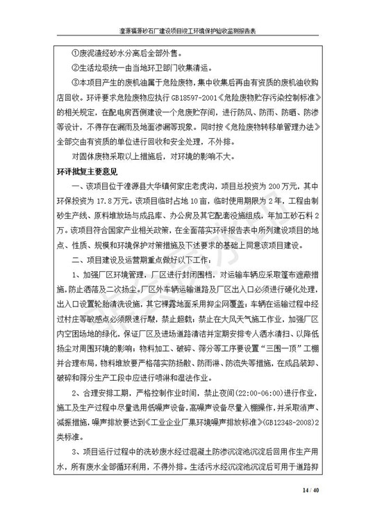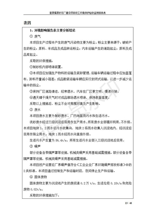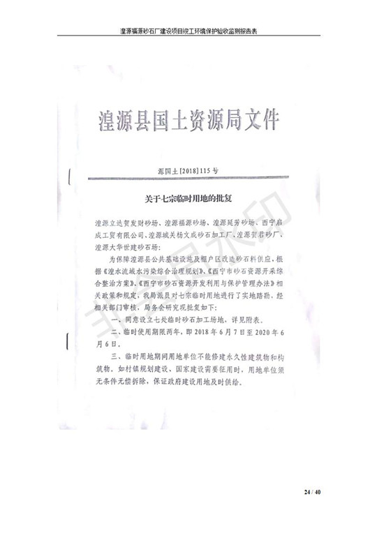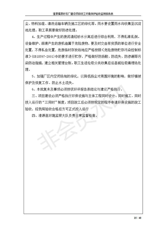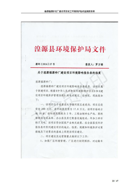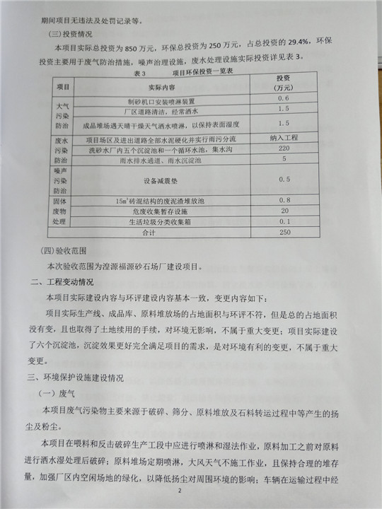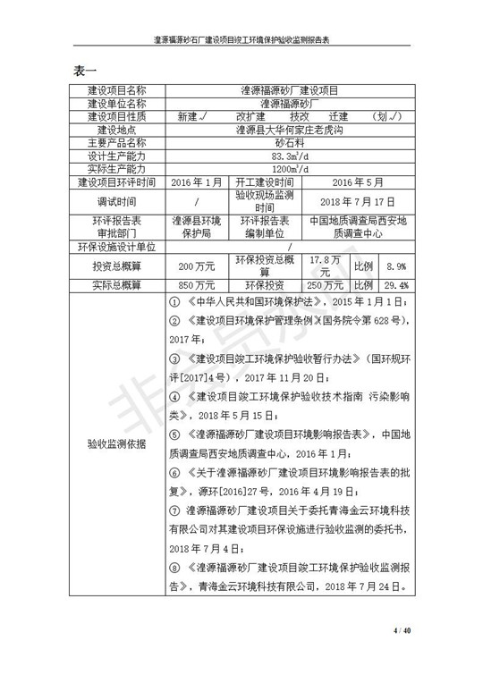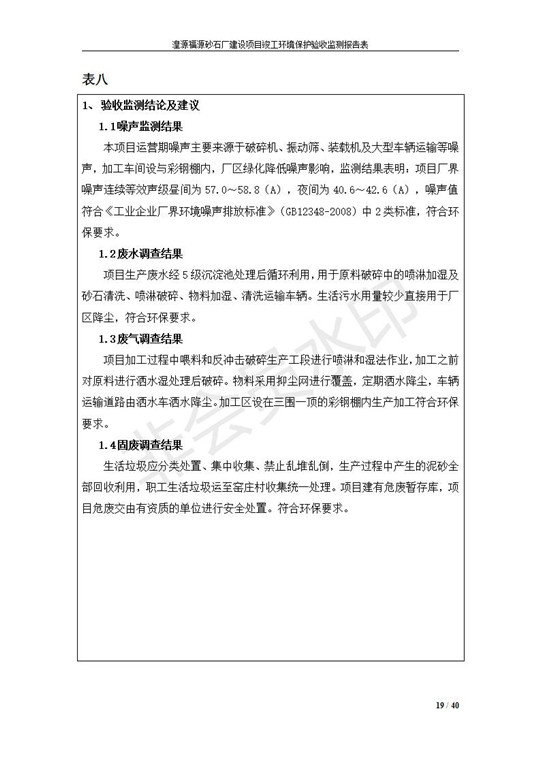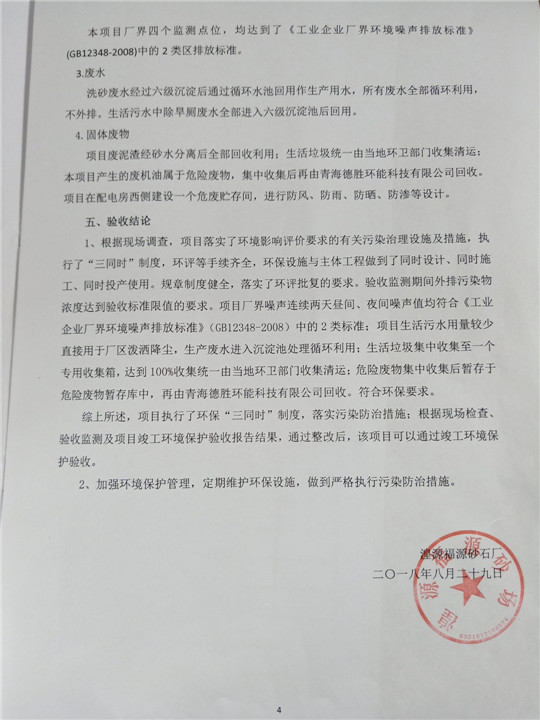 根據(jù)中華人民共和國國務(wù)院令第253號《建設(shè)項目環(huán)境保護管理條例》(中華人民共和國國務(wù)院令第682號《國務(wù)院關(guān)于修改〈建設(shè)項目環(huán)境保護管理條例〉的決定》和《建設(shè)項目竣工環(huán)境保護驗收暫行辦法》,嚴格依照有關(guān)法律法規(guī),建設(shè)項目環(huán)境保護設(shè)施驗收技術(shù)規(guī)范,本項目環(huán)評報告表和環(huán)保審批部門審批意見以及企業(yè)自行驗收相關(guān)要求等對本項目進行驗收,本項目符合環(huán)保驗收條件,可以通過環(huán)保驗收。 湟源福砂廠建設(shè)項目竣工環(huán)境保護驗收意見
