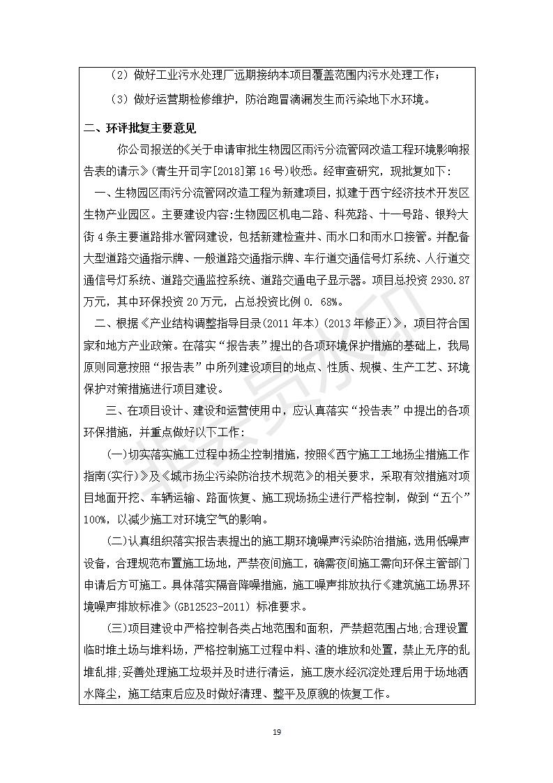 生物園區(qū)雨污分流管網(wǎng)改造工程竣工環(huán)境保護(hù)驗(yàn)收調(diào)查表 公示發(fā)布日期:(2018-12-21) 點(diǎn)擊次數(shù):2813 |