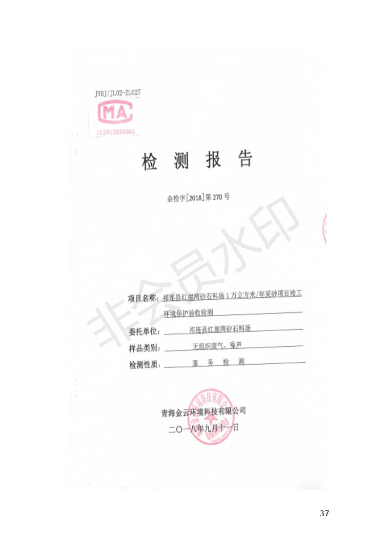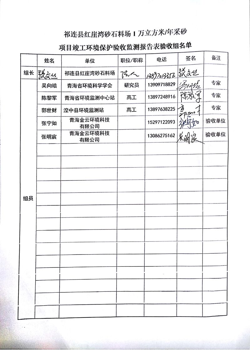 祁連縣紅崖灣砂石料場1萬立方米/年采砂項目竣工環(huán)境保護驗收監(jiān)測報告表公示
