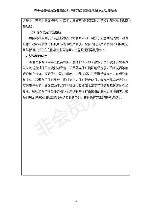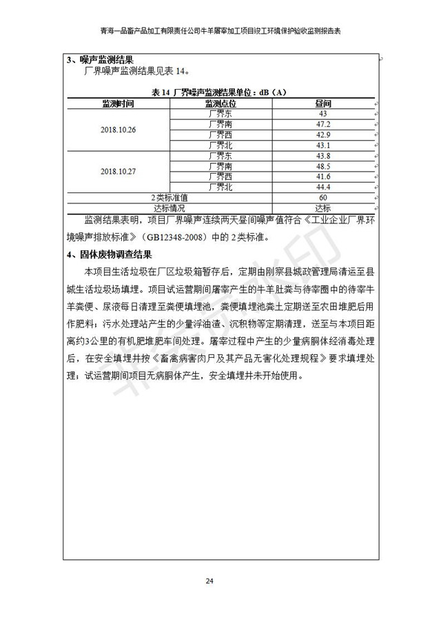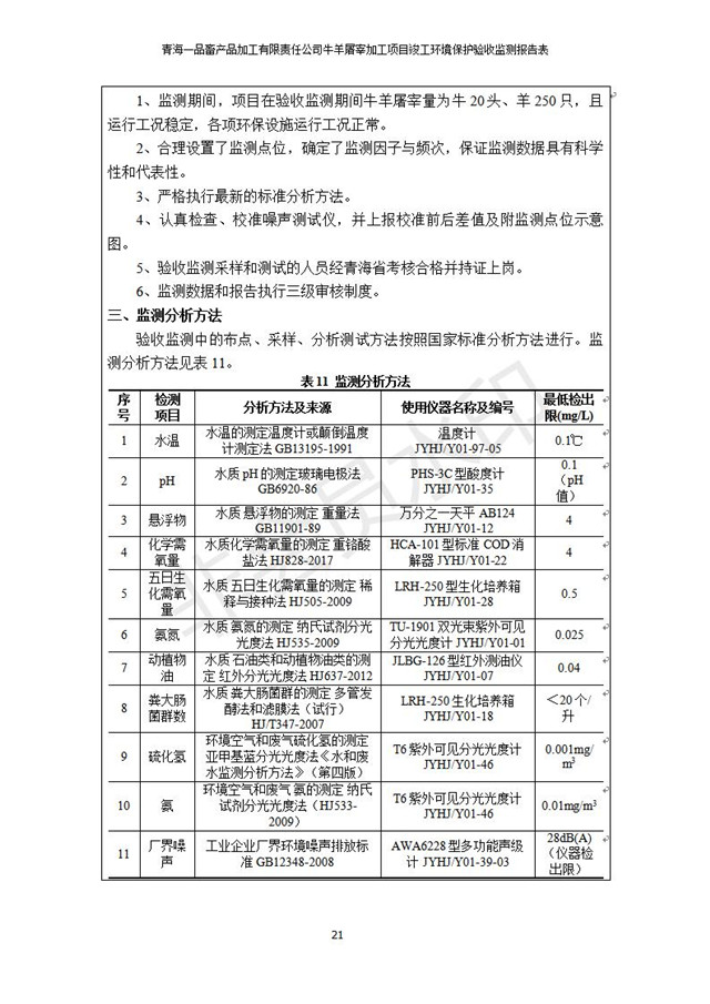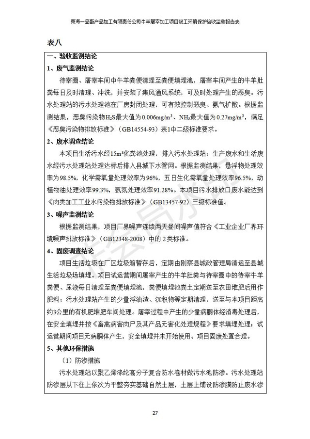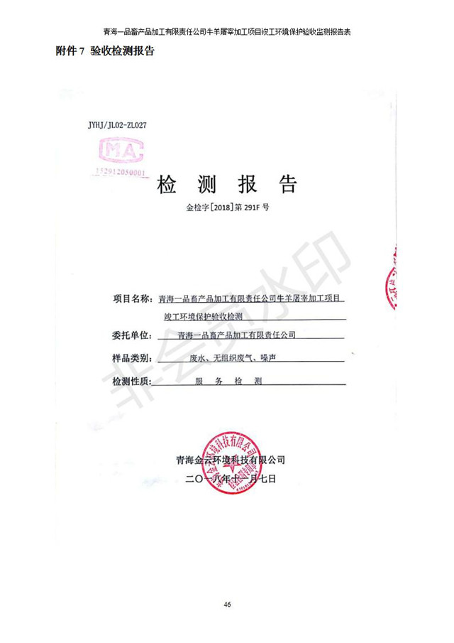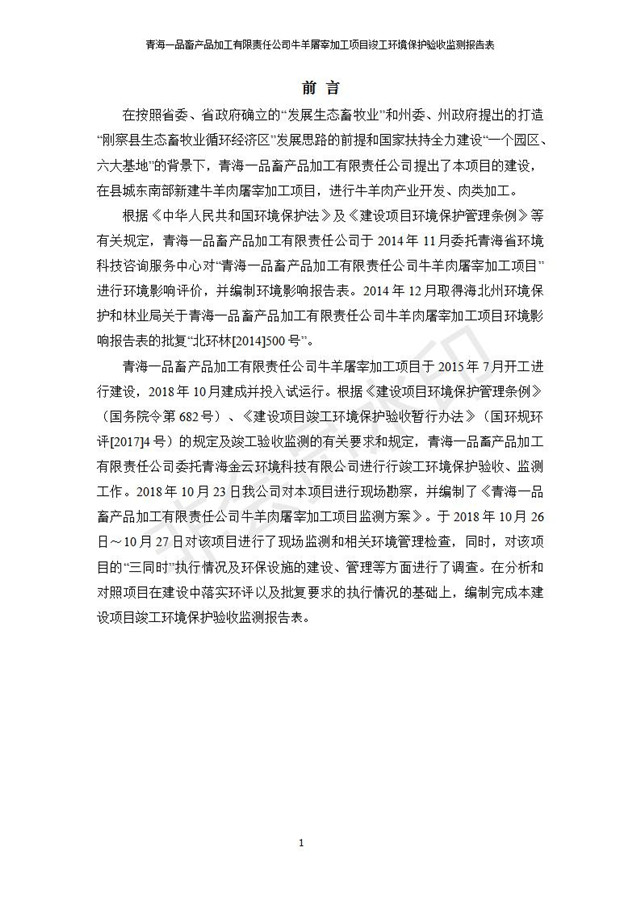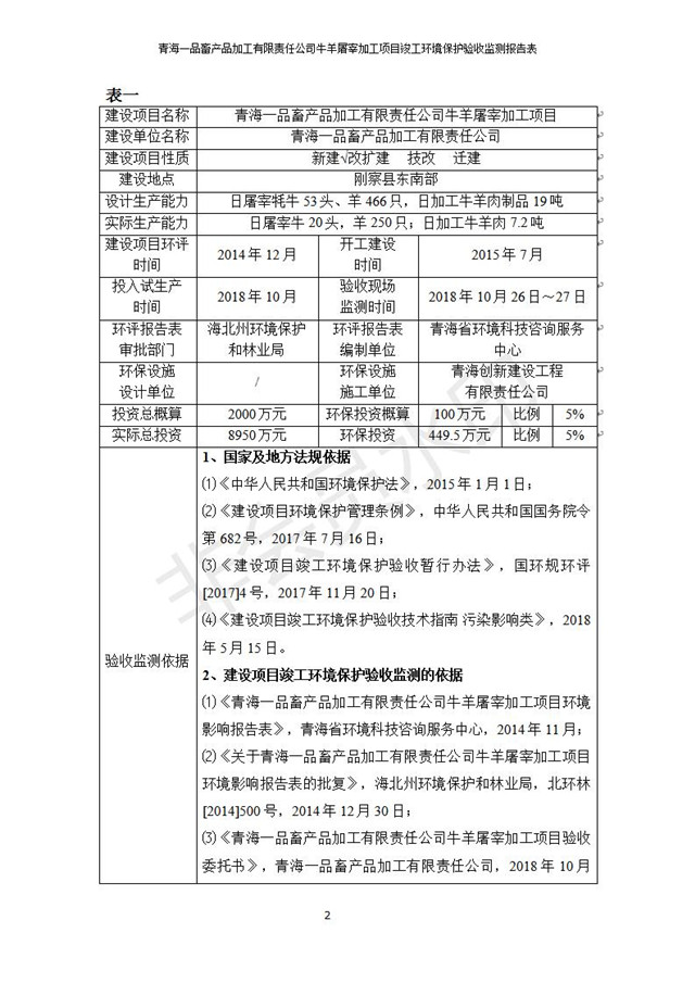 青海一品畜產(chǎn)品加工有限責(zé)任公司牛羊屠宰加工項(xiàng)目 竣工環(huán)境保護(hù)驗(yàn)收監(jiān)測報(bào)告表公示發(fā)布日期:(2019-1-11) 點(diǎn)擊次數(shù):3127 |