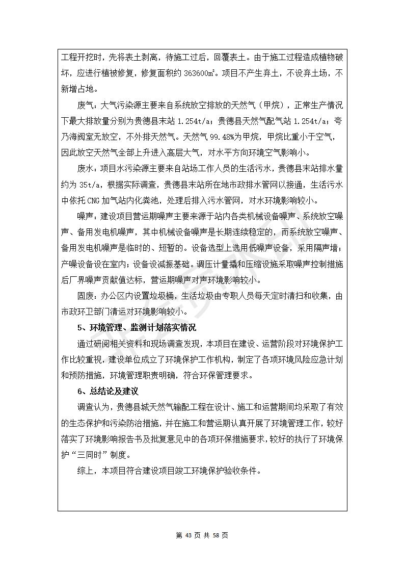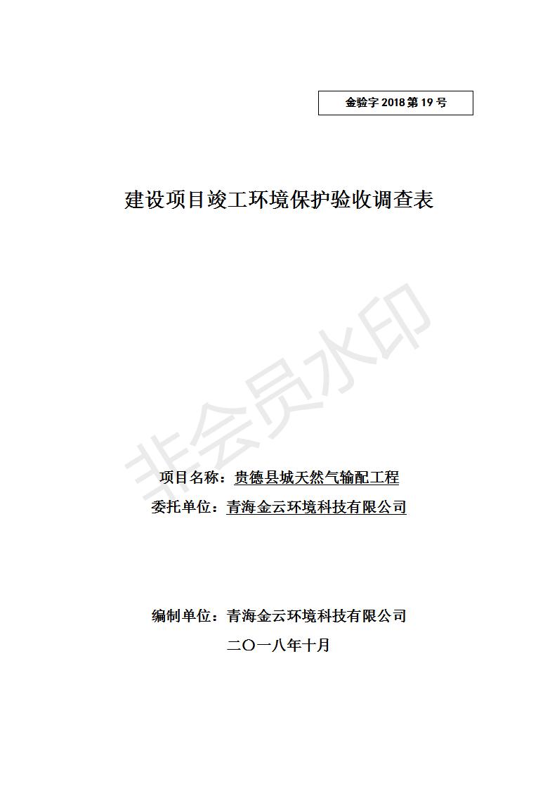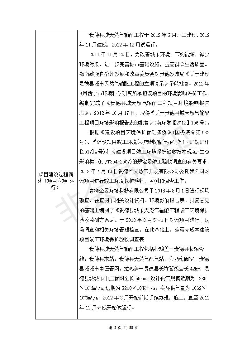 貴德縣城輸配管線工程竣工環(huán)境保護(hù)驗(yàn)收調(diào)查表公示