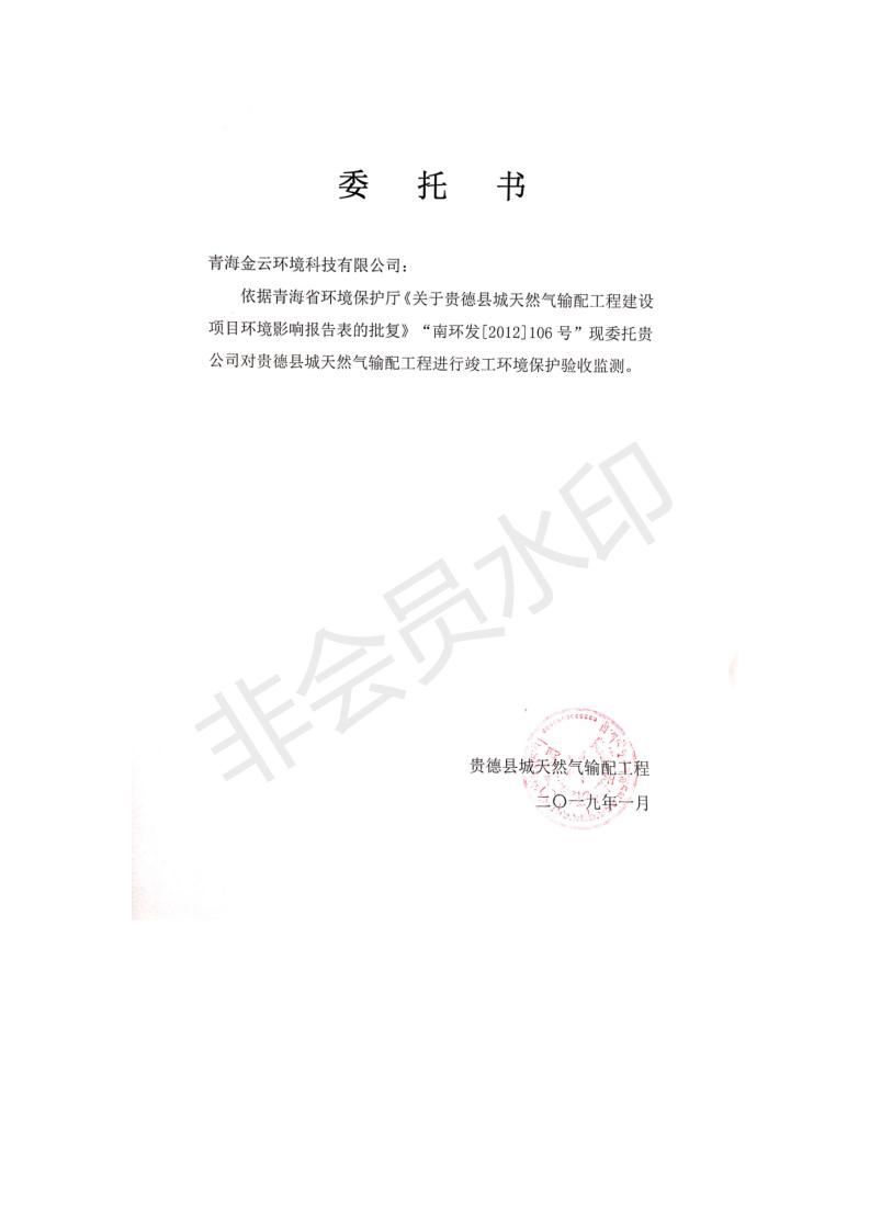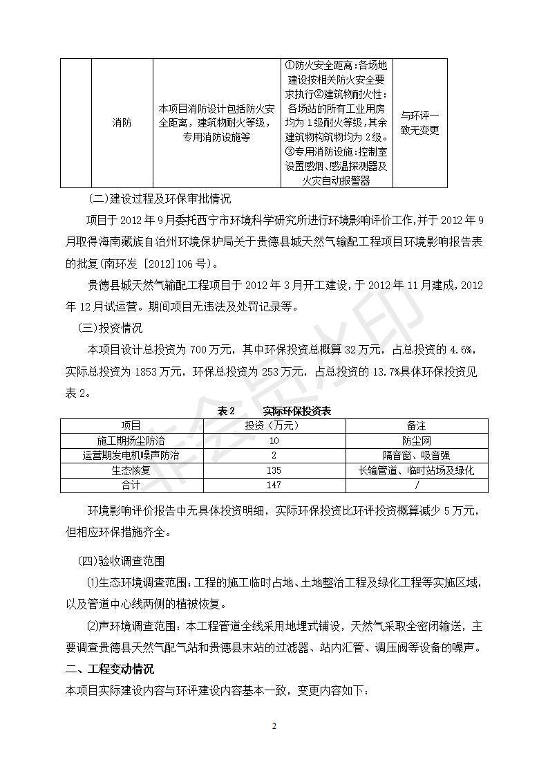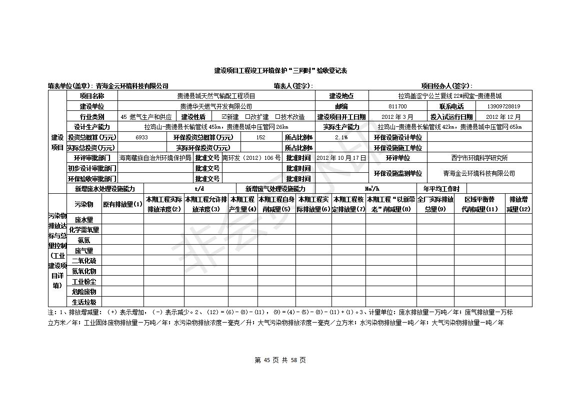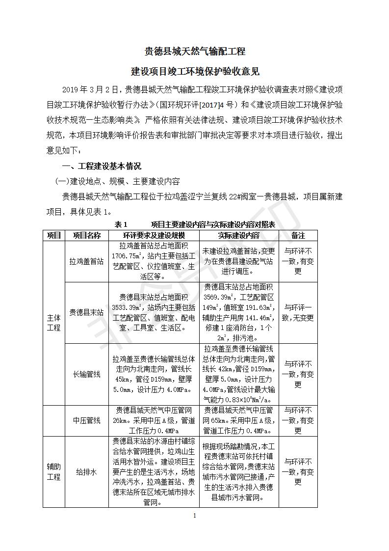 貴德縣城輸配管線工程竣工環(huán)境保護(hù)驗(yàn)收調(diào)查表公示