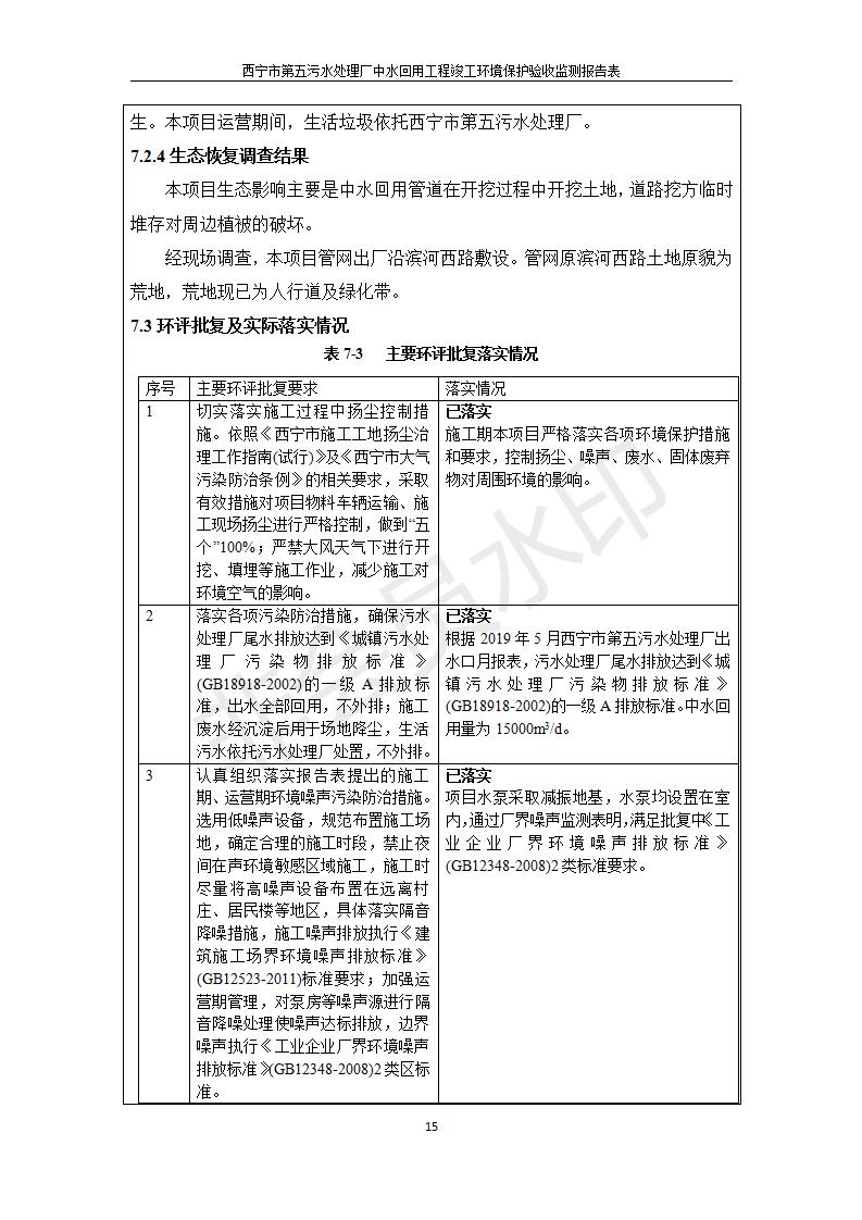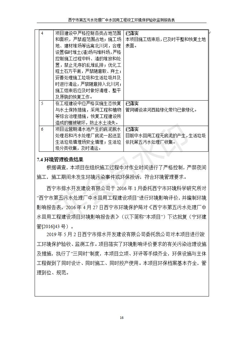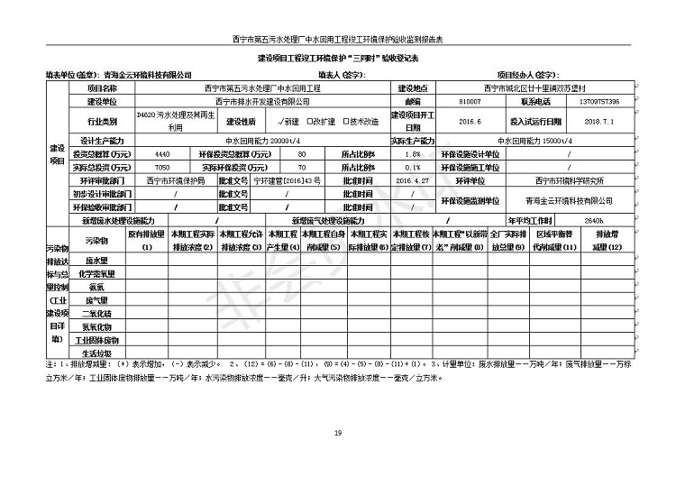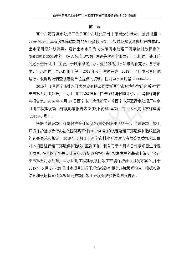 西寧市第五污水處理廠中水回用工程建設(shè)項(xiàng)目竣工環(huán)境保護(hù)驗(yàn)收監(jiān)測報(bào)告表公示發(fā)布日期:(2019-7-10) 點(diǎn)擊次數(shù):2402 |