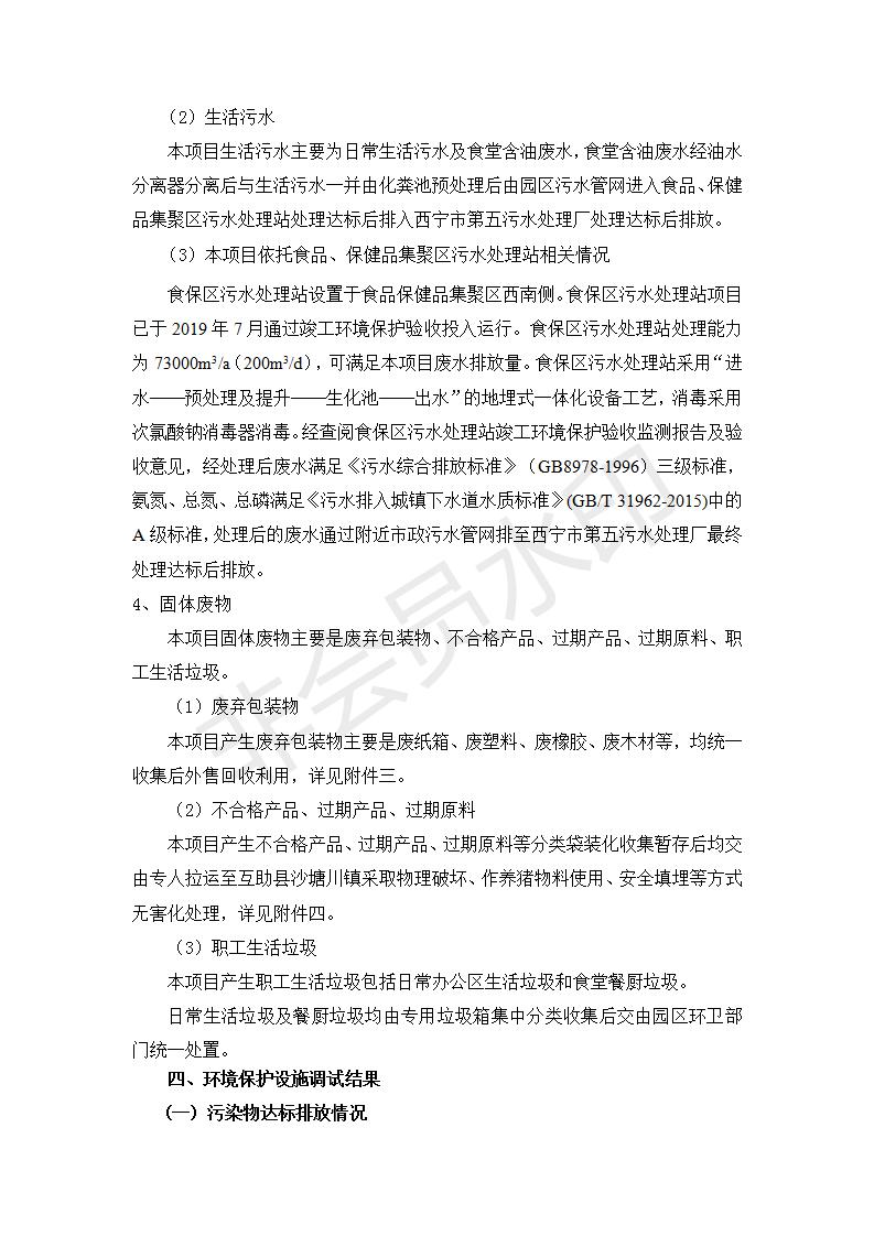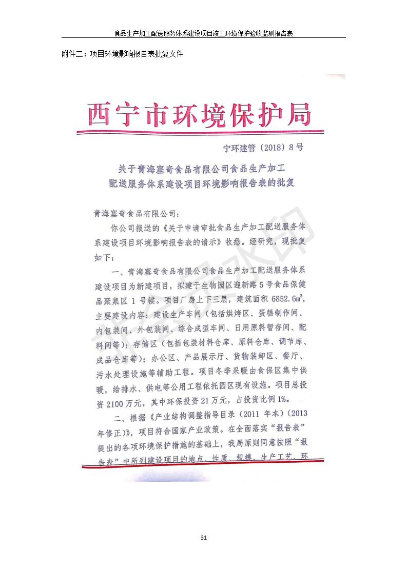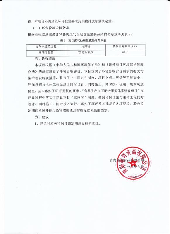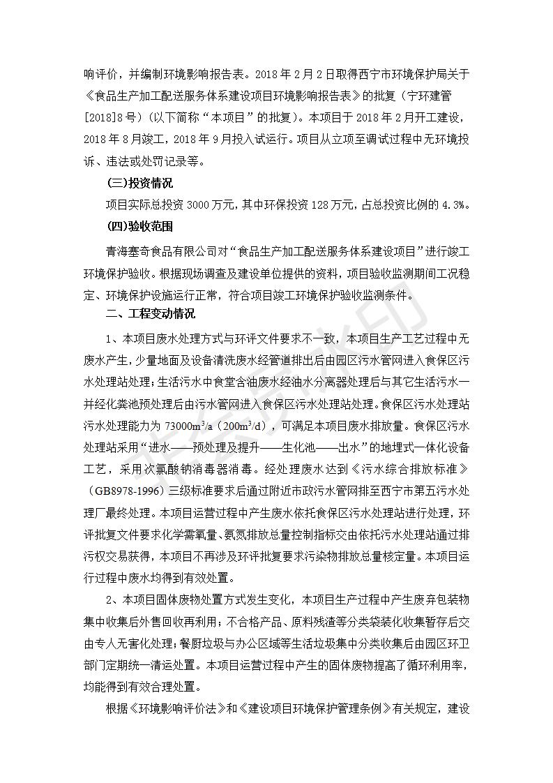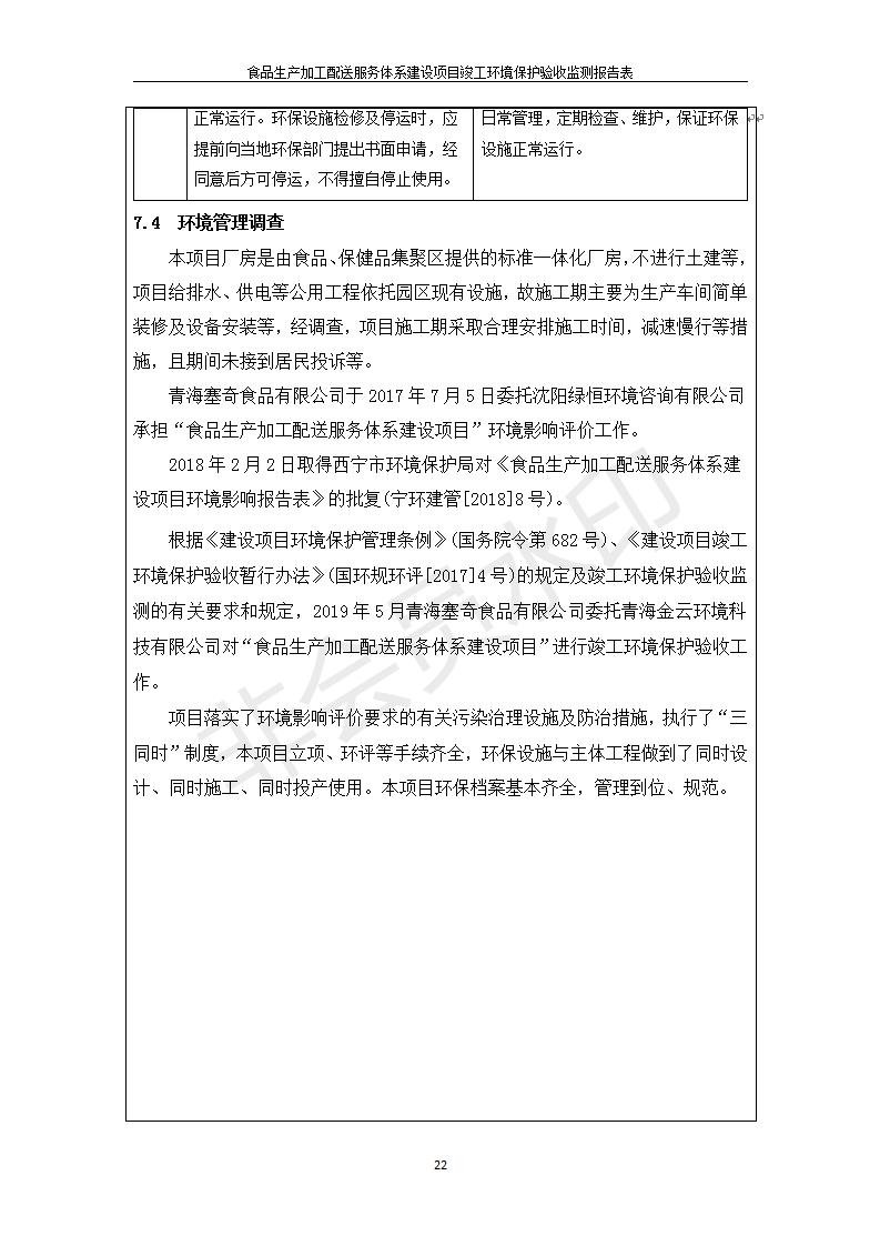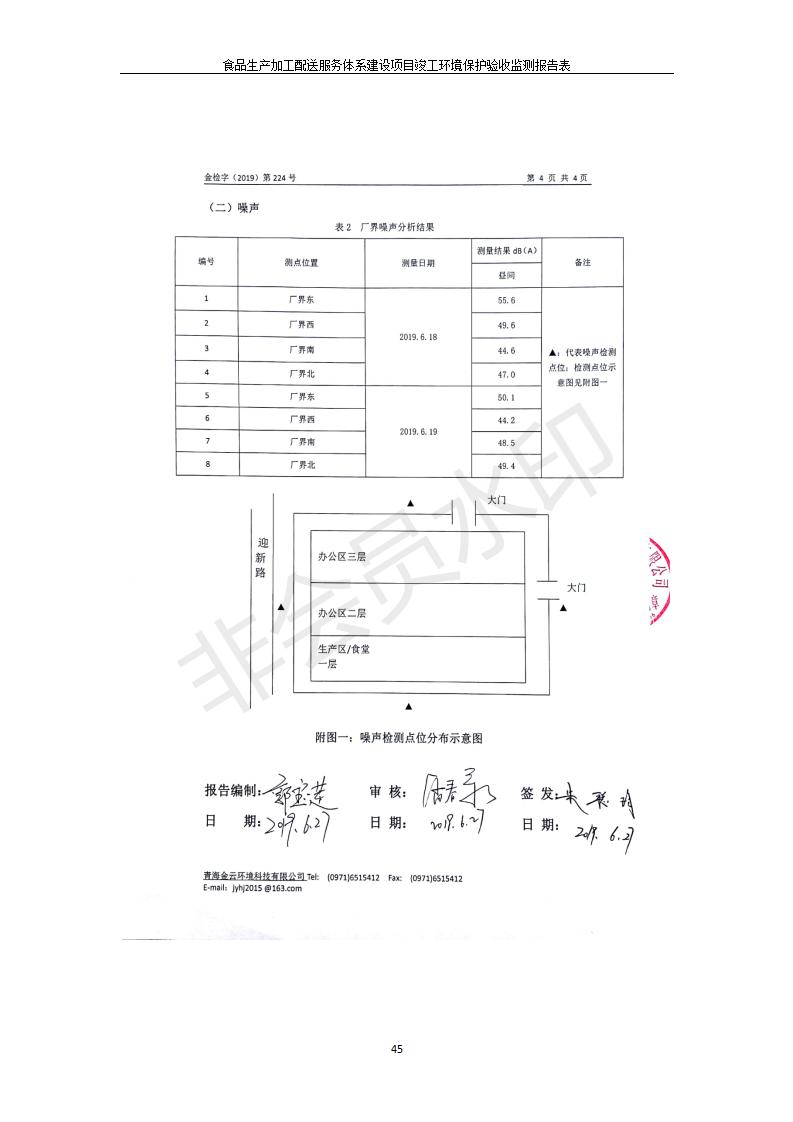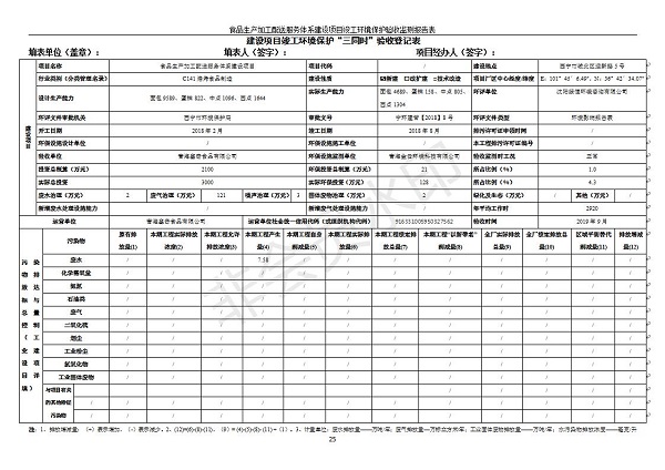 根據(jù)中華人民共和國國務院令第682號《國務院關(guān)于修改〈建設項目環(huán)境保護管理條例〉的決定》和《建設項目竣工環(huán)境保護驗收暫行辦法》(國務院令682號),食品生產(chǎn)加工配送服務體系建設項目(包括竣工環(huán)境保護驗收監(jiān)測報告表和驗收意見)公示如下。 一、項目名稱:食品生產(chǎn)加工配送服務體系建設項目 二、地點:西寧市城北區(qū)生物園區(qū)迎新路5號食品保健品集聚區(qū)1號樓 六、聯(lián)系電 話:0971-6515411 七、公示時間:二〇一九年九月二十日至二〇一九年十月二十二日 公示期間,對上述公示內(nèi)容如有異議,請以書面形式反饋,個人須署真實姓名,單位須加蓋公章。