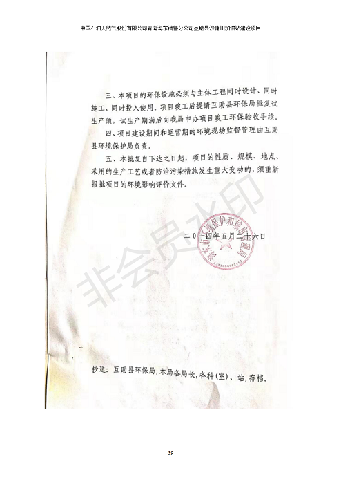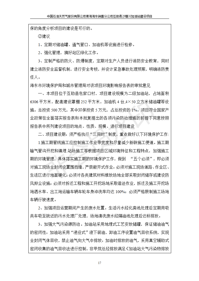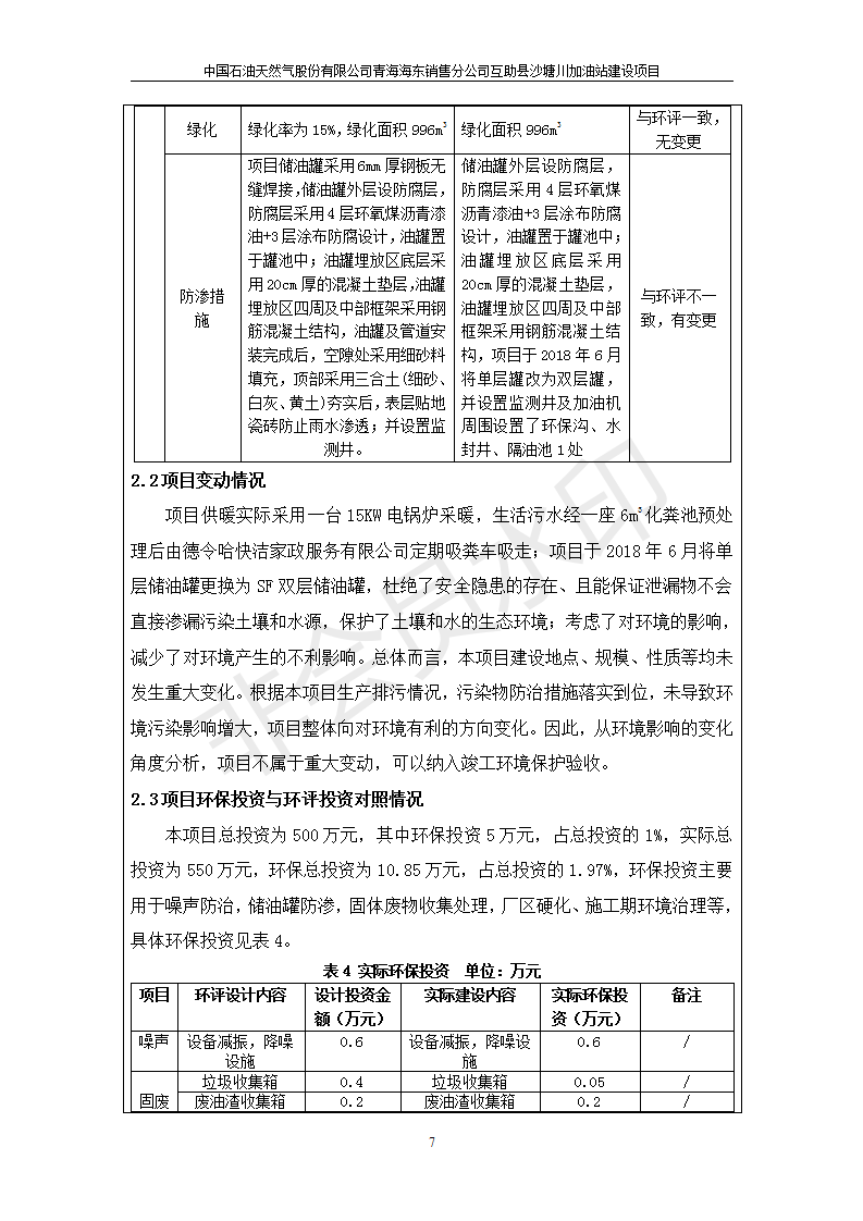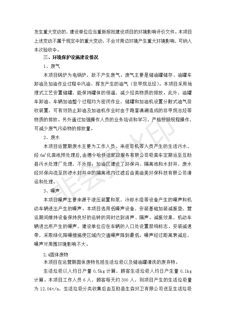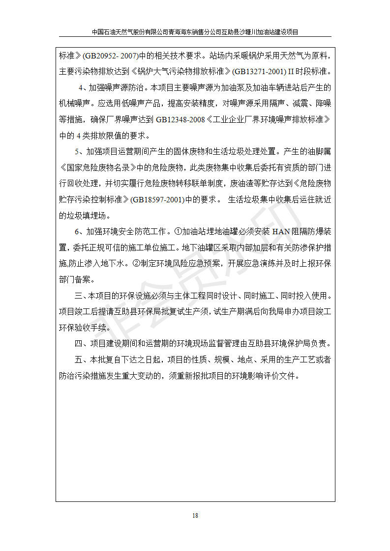 根據(jù)中華人民共和國(guó)國(guó)務(wù)院令第682號(hào)《國(guó)務(wù)院關(guān)于修改〈建設(shè)項(xiàng)目環(huán)境保護(hù)管理?xiàng)l例〉的決定》和《建設(shè)項(xiàng)目竣工環(huán)境保護(hù)驗(yàn)收暫行辦法》(國(guó)務(wù)院令682號(hào)),互助縣沙塘川加油站建設(shè)項(xiàng)目(包括竣工環(huán)境保護(hù)驗(yàn)收監(jiān)測(cè)報(bào)告表和驗(yàn)收意見)公示如下。 一、項(xiàng)目名稱:互助縣沙塘川加油站建設(shè)項(xiàng)目 二、地點(diǎn):互助縣塘川鎮(zhèn)包家口村 六、聯(lián)系電話:0971-6515411 七、公示時(shí)間:二〇一九年九月二十七日至二〇一九年十月二十九日 公示期間,對(duì)上述公示內(nèi)容如有異議,請(qǐng)以書面形式反饋,個(gè)人須署真實(shí)姓名,單位須加蓋公章。