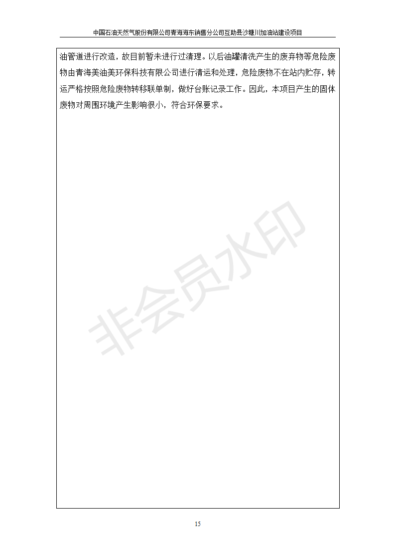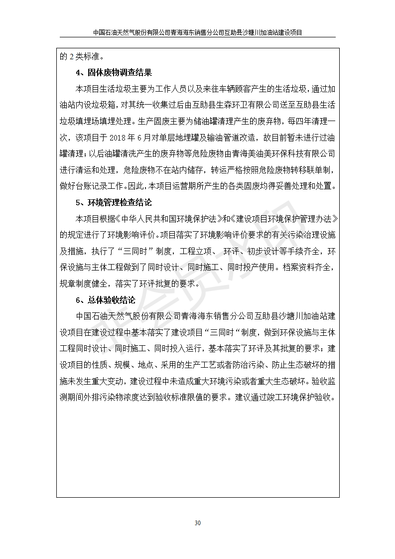 | 上一篇:互助縣東環(huán)路加油站改建項(xiàng)目竣工環(huán)境保護(hù)驗(yàn)收監(jiān)測(cè)報(bào)告表公示 | 下一篇:食品生產(chǎn)加工配送服務(wù)體系建設(shè)項(xiàng)目 竣工環(huán)境保護(hù)驗(yàn)收監(jiān)測(cè)報(bào)告表公示 |