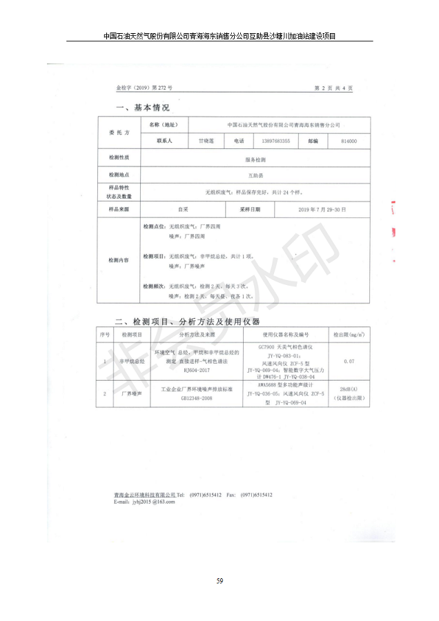 互助縣沙塘川加油站建設(shè)項(xiàng)目竣工環(huán)境保護(hù)驗(yàn)收監(jiān)測(cè)報(bào)告表發(fā)布日期:(2019-9-27) 點(diǎn)擊次數(shù):2219 |