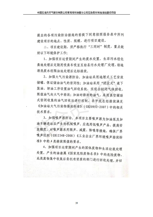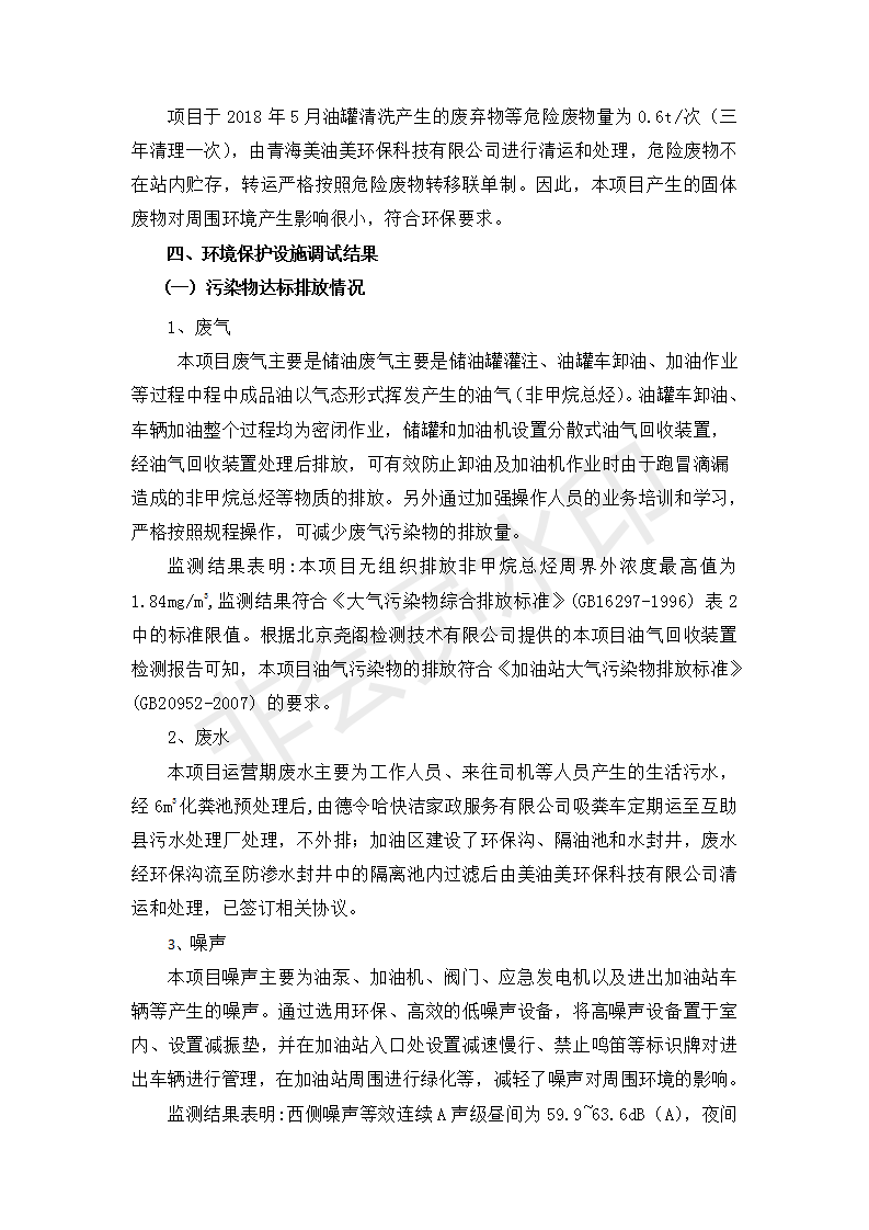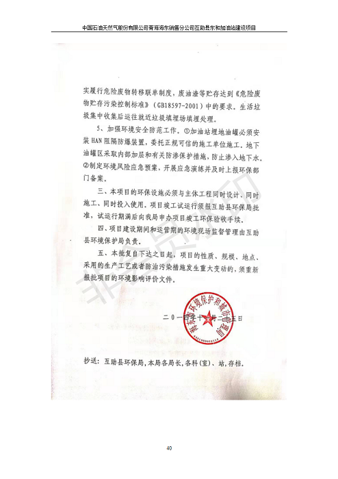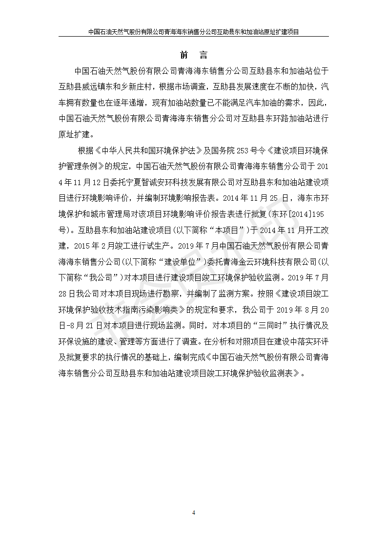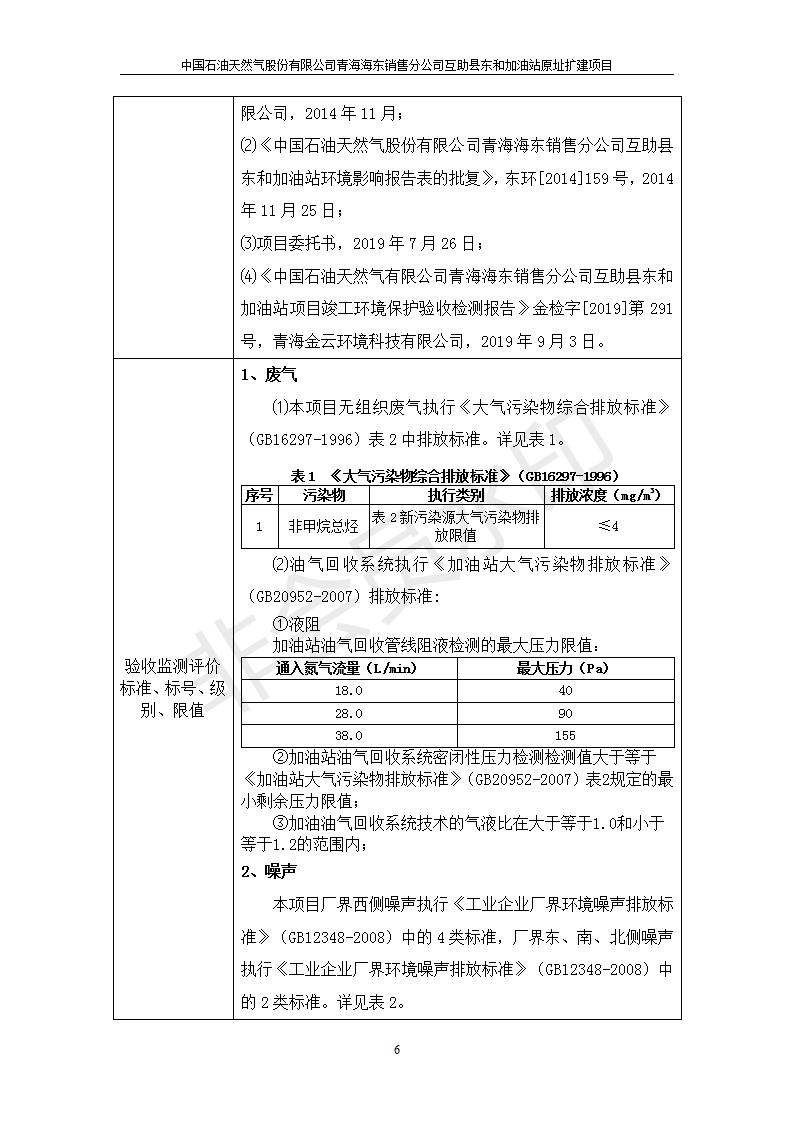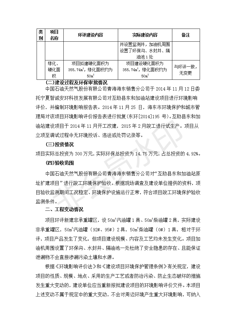 根據(jù)中華人民共和國國務(wù)院令第682號《國務(wù)院關(guān)于修改〈建設(shè)項目環(huán)境保護(hù)管理條例〉的決定》和《建設(shè)項目竣工環(huán)境保護(hù)驗收暫行辦法》(國務(wù)院令682號),互助縣東和加油站原址擴(kuò)建項目(包括竣工環(huán)境保護(hù)驗收監(jiān)測報告表和驗收意見)公示如下。 一、項目名稱:互助縣東和加油站原址擴(kuò)建項目 二、地點(diǎn):互助縣威遠(yuǎn)鎮(zhèn)東和鄉(xiāng)新莊村 六、聯(lián)系電話:0971-6515411 七、公示時間:二〇一九年九月二十七日至二〇一九年十月二十九日 公示期間,對上述公示內(nèi)容如有異議,請以書面形式反饋,個人須署真實姓名,單位須加蓋公章。