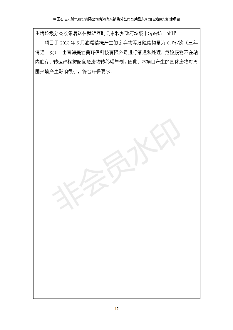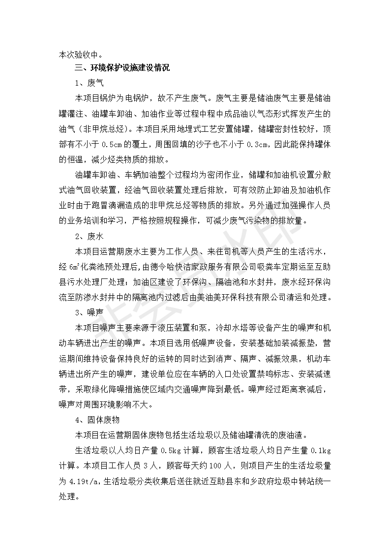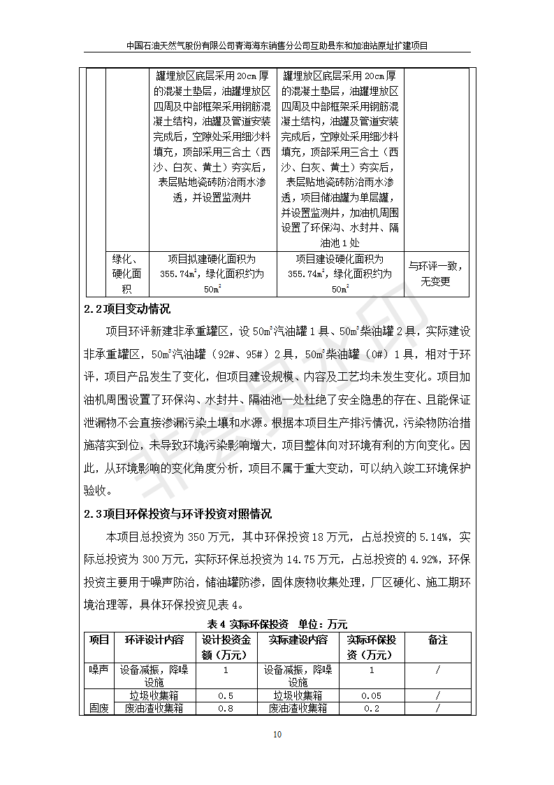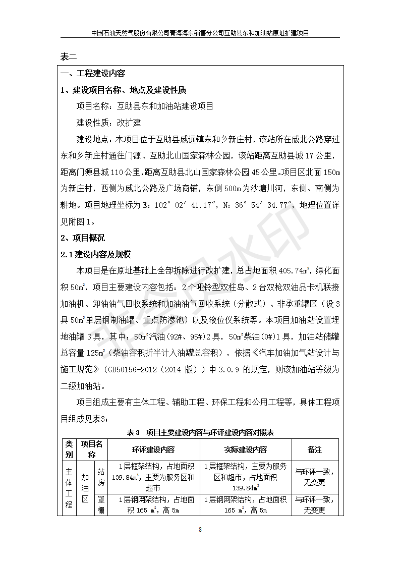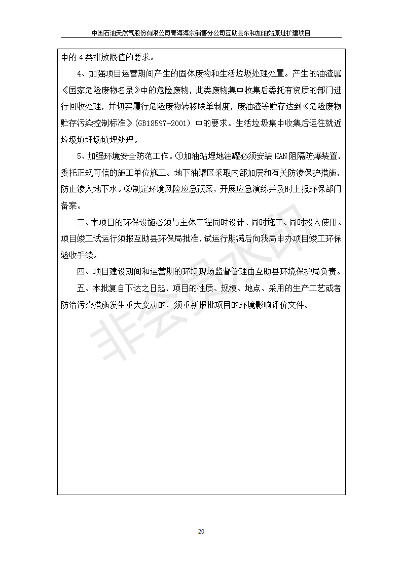 根據(jù)中華人民共和國國務(wù)院令第682號《國務(wù)院關(guān)于修改〈建設(shè)項目環(huán)境保護(hù)管理條例〉的決定》和《建設(shè)項目竣工環(huán)境保護(hù)驗收暫行辦法》(國務(wù)院令682號),互助縣東和加油站原址擴(kuò)建項目(包括竣工環(huán)境保護(hù)驗收監(jiān)測報告表和驗收意見)公示如下。 一、項目名稱:互助縣東和加油站原址擴(kuò)建項目 二、地點(diǎn):互助縣威遠(yuǎn)鎮(zhèn)東和鄉(xiāng)新莊村 六、聯(lián)系電話:0971-6515411 七、公示時間:二〇一九年九月二十七日至二〇一九年十月二十九日 公示期間,對上述公示內(nèi)容如有異議,請以書面形式反饋,個人須署真實姓名,單位須加蓋公章。