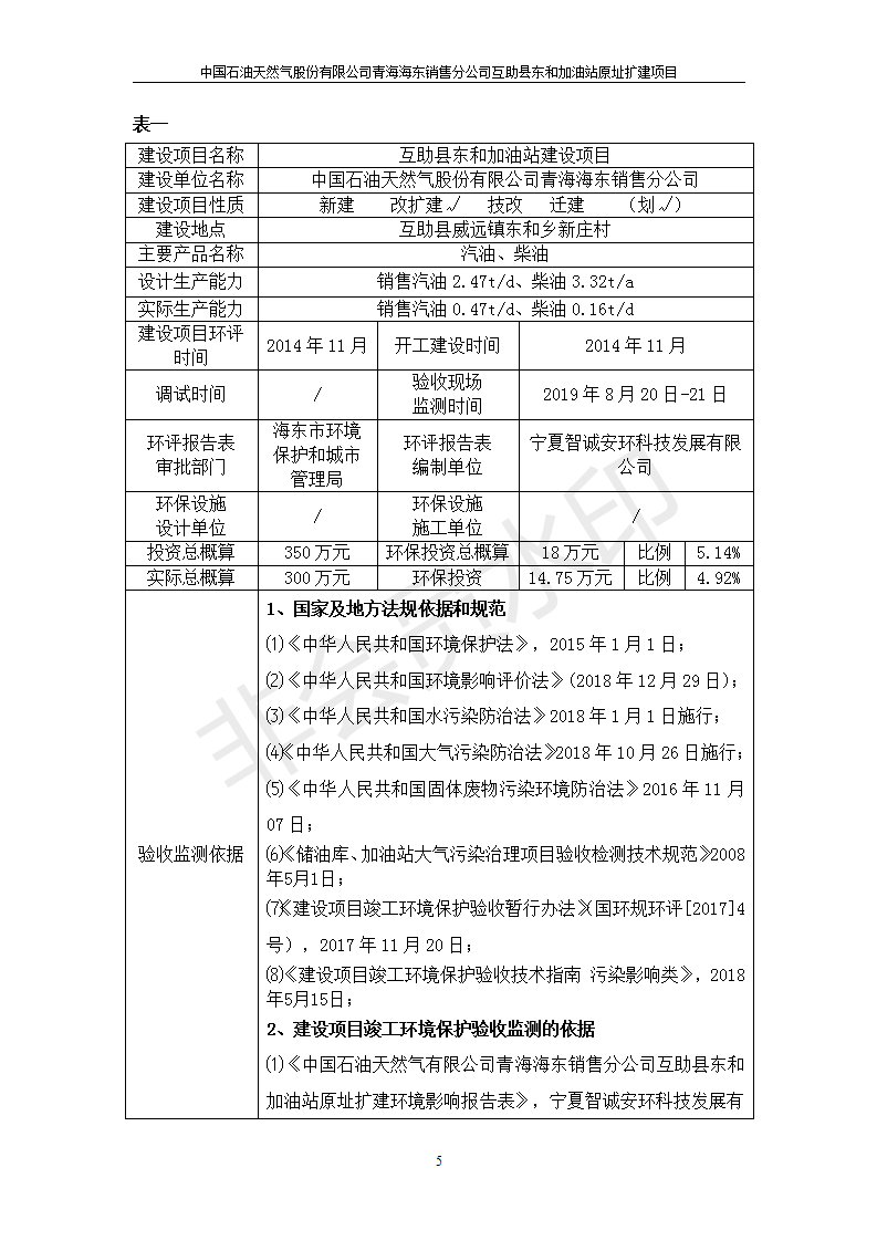 互助縣東和加油站原址擴(kuò)建項目 竣工環(huán)境保護(hù)驗收監(jiān)測報告表公示發(fā)布日期:(2019-9-27) 點(diǎn)擊次數(shù):2472 |