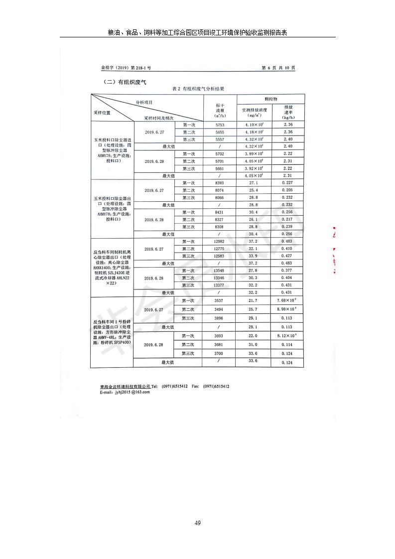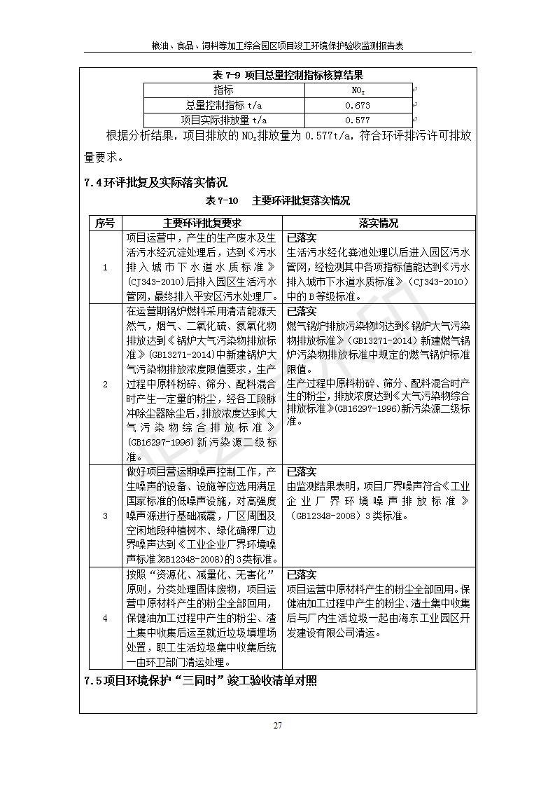 糧油、食品、飼料等加工綜合園區(qū)項目竣工環(huán)境保護驗收監(jiān)測報告表公示發(fā)布日期:(2019-10-9) 點擊次數(shù):2627 |