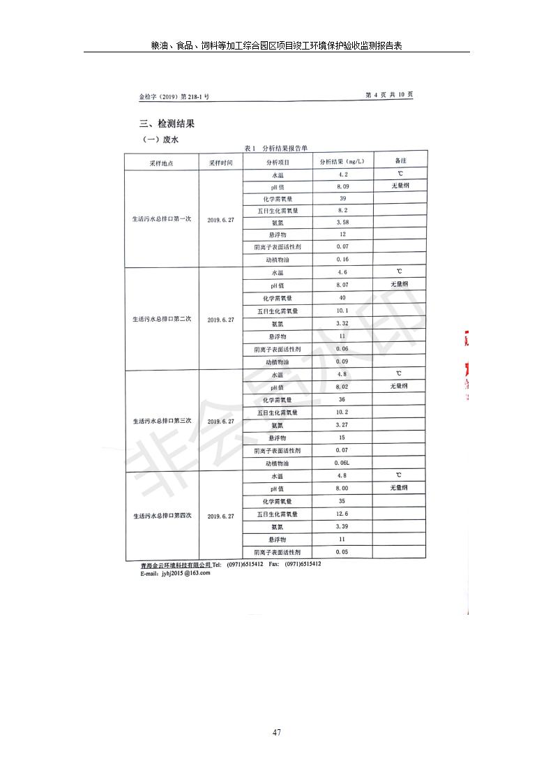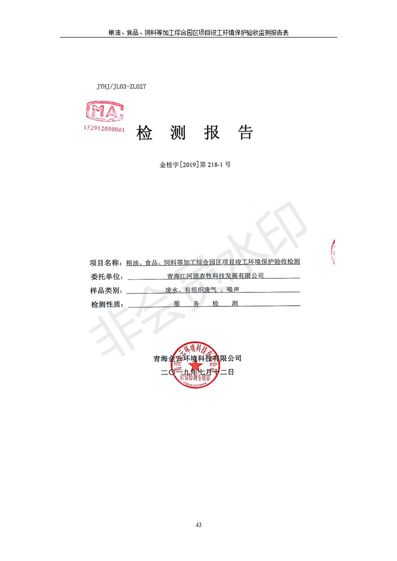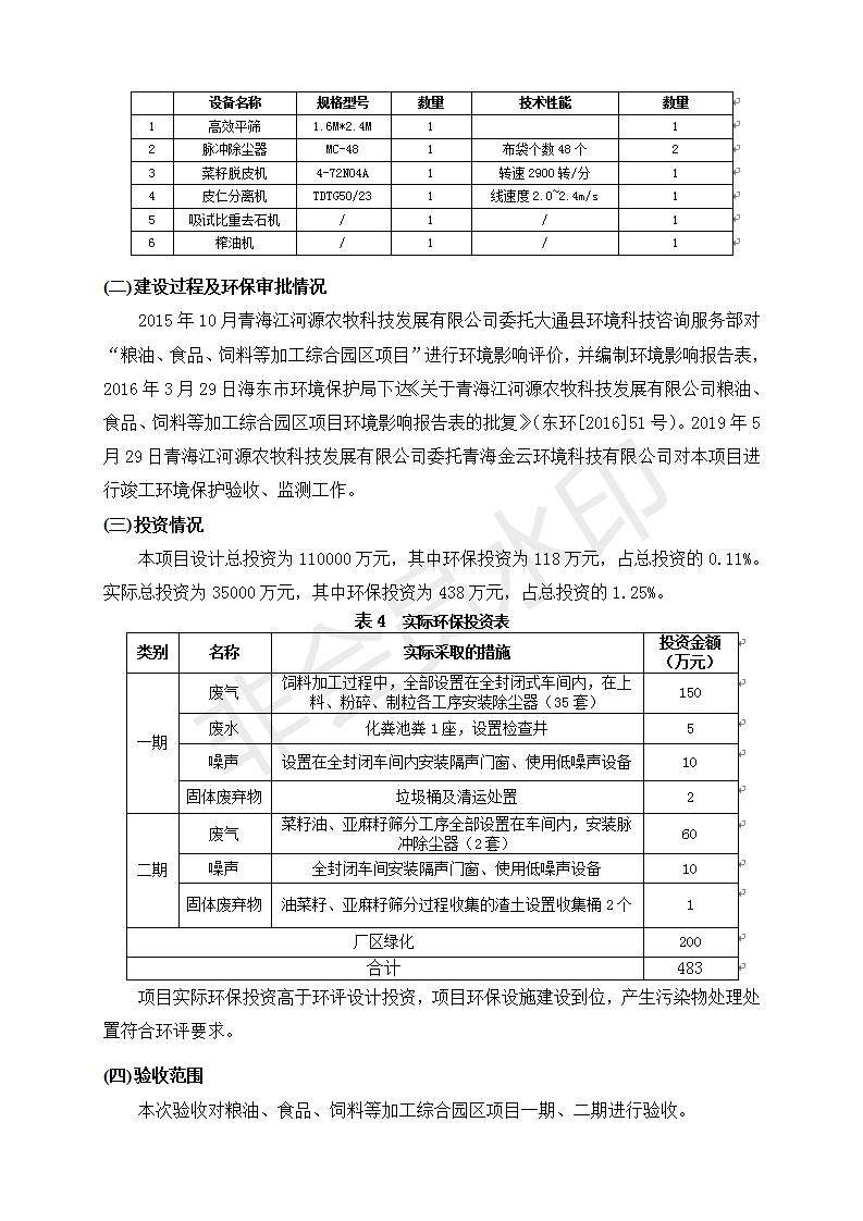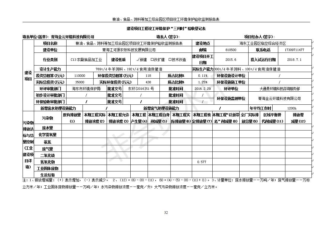 根據(jù)中華人民共和國國務(wù)院令第682號《國務(wù)院關(guān)于修改〈建設(shè)項目環(huán)境保護管理條例〉的決定》和《建設(shè)項目竣工環(huán)境保護驗收暫行辦法》(國務(wù)院令682號),糧油、食品、飼料等加工綜合園區(qū)項目竣工環(huán)境保護驗收監(jiān)測報告表(包括竣工環(huán)境保護驗收監(jiān)測報告表和驗收意見)公示如下。 一、項目名稱:糧油、食品、飼料等加工綜合園區(qū)項目 二、地點:河湟新區(qū)(海東工業(yè)園區(qū)臨空綜合經(jīng)濟園) 六、聯(lián)系電話:0971-6515411 七、公示時間:二〇一九年十月九日至二〇一九年十一月五日 公示期間,對上述公示內(nèi)容如有異議,請以書面形式反饋,個人須署真實姓名,單位須加蓋公章。