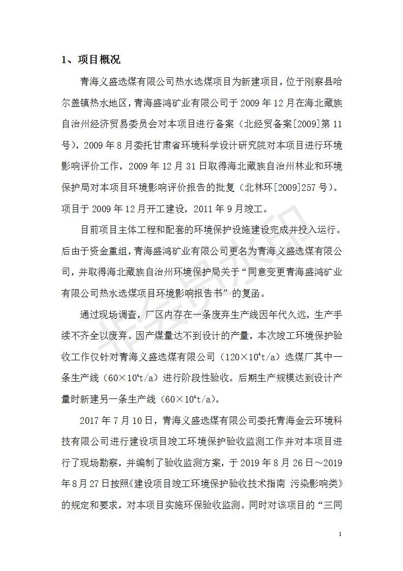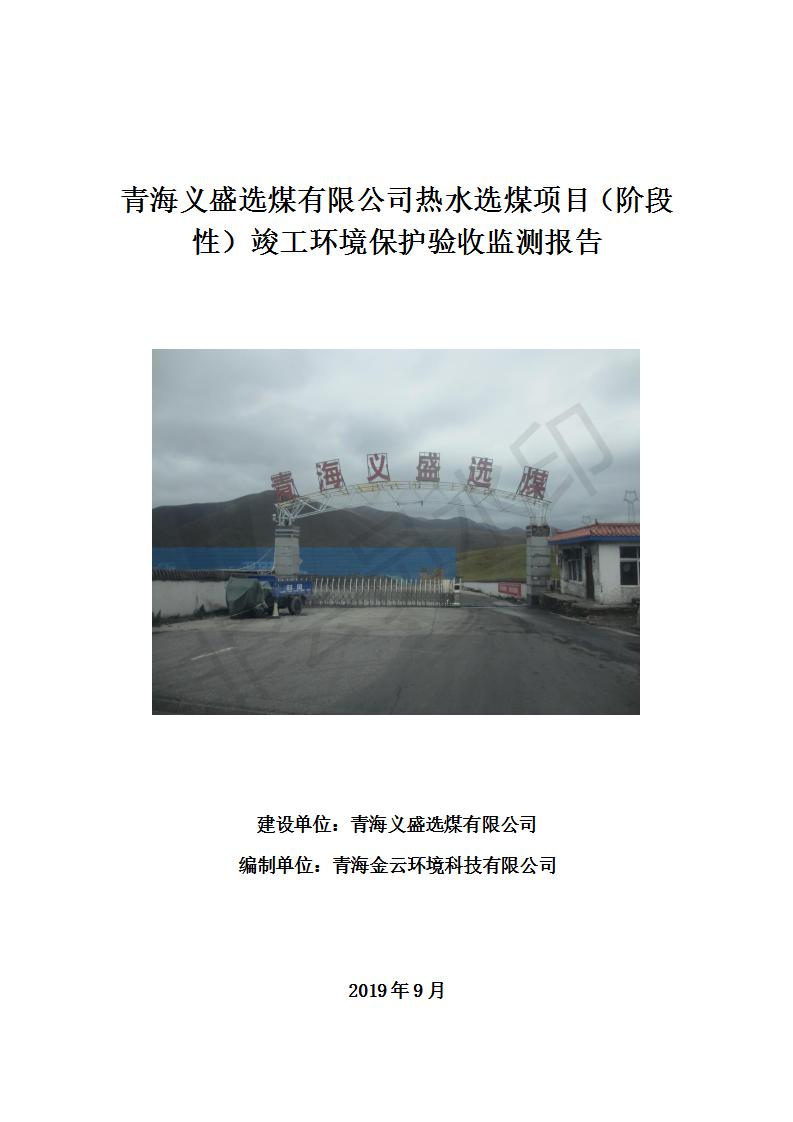 青海義盛選煤有限公司熱水選煤項目(階段性)竣工環(huán)境保護驗收發(fā)布日期:(2019-11-12) 點擊次數(shù):2222 |