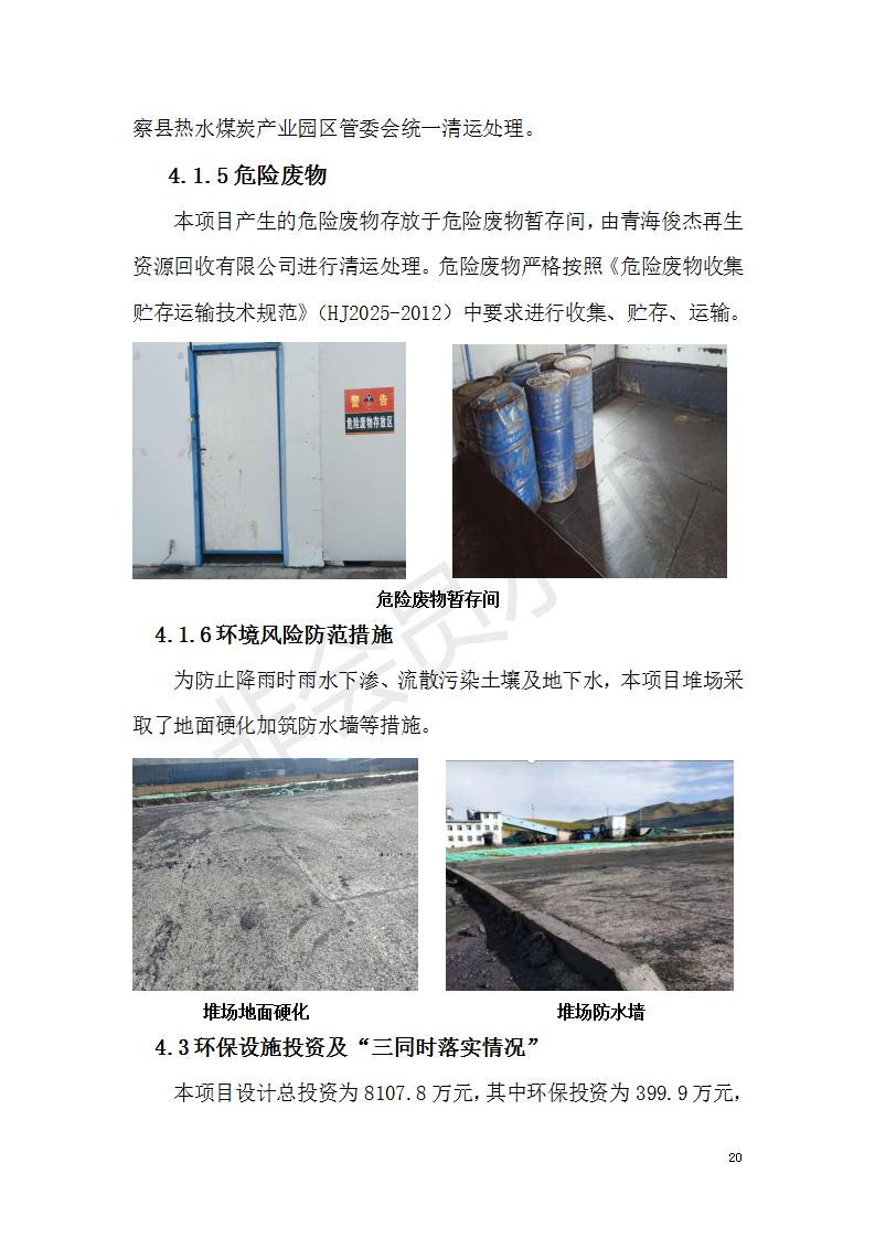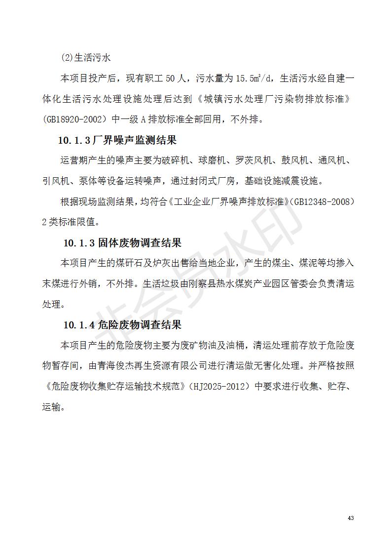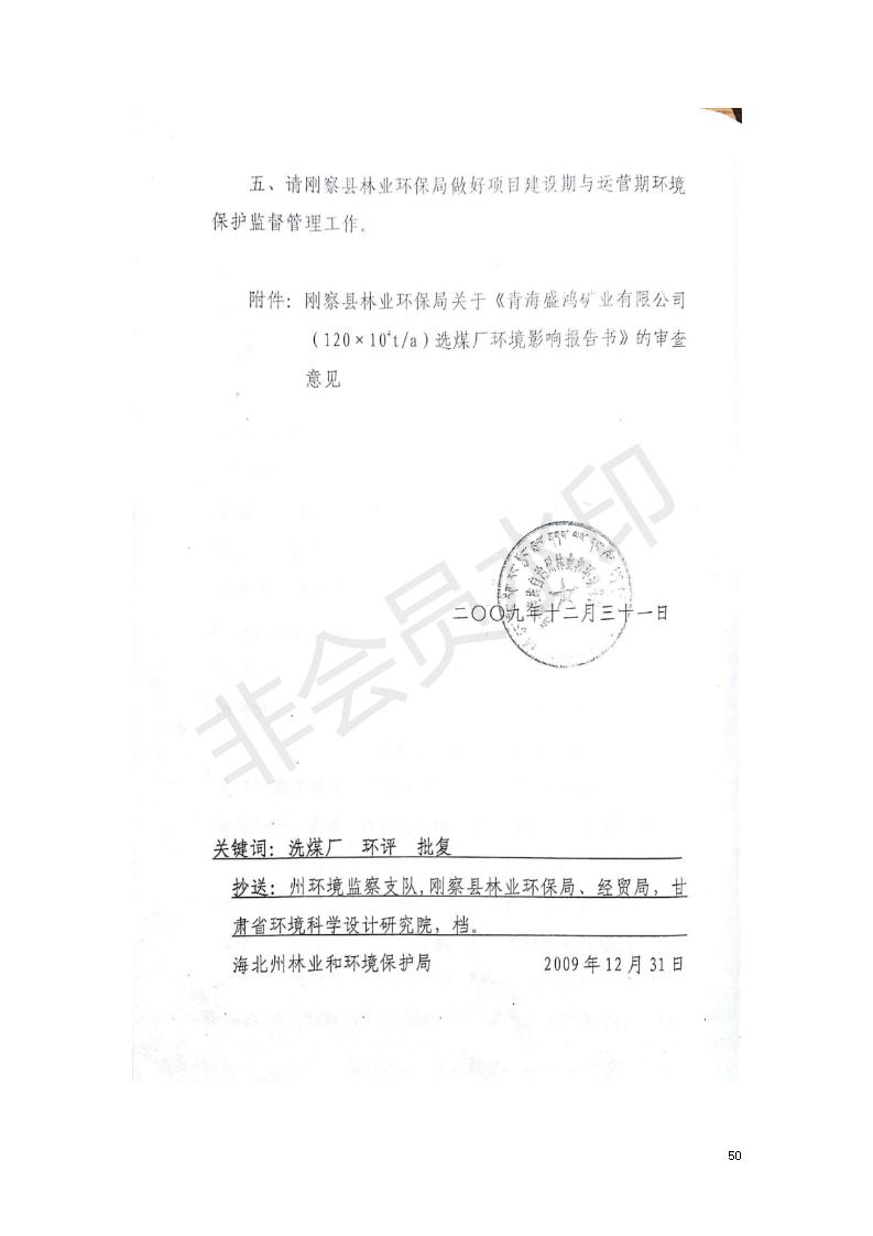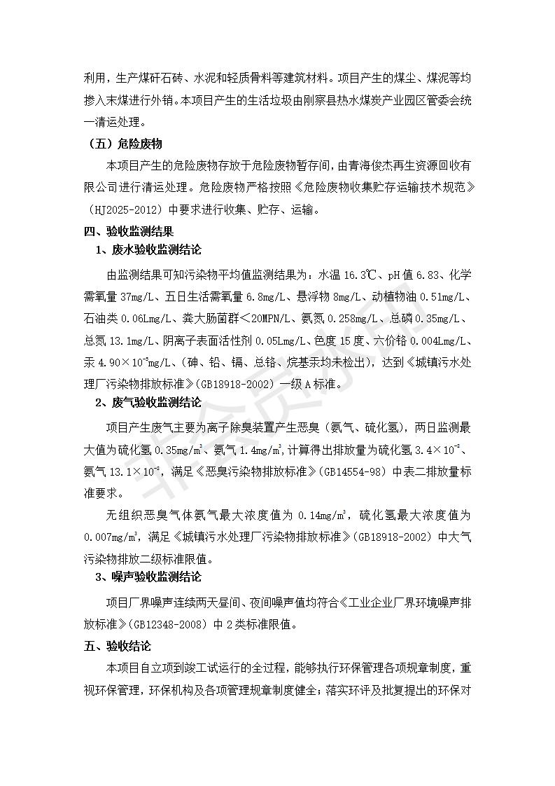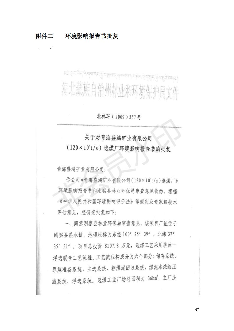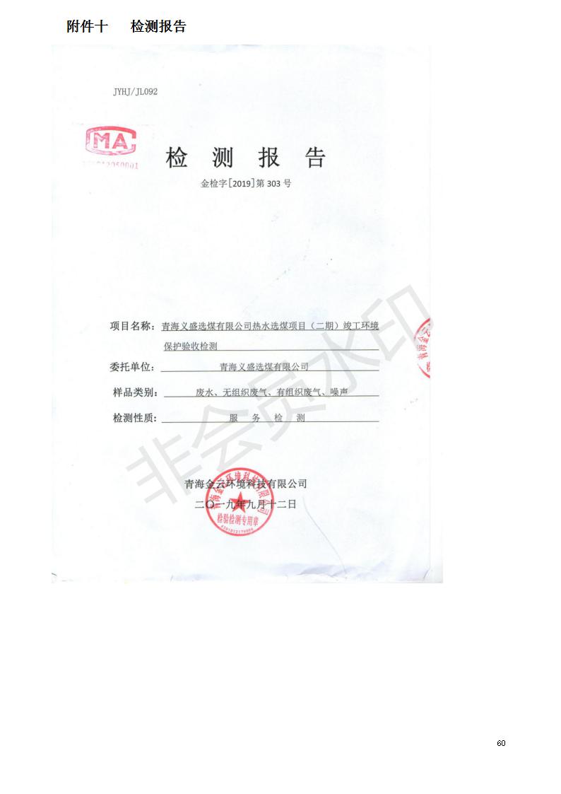 根據(jù)中華人民共和國國務(wù)院令第682號《國務(wù)院關(guān)于修改〈建設(shè)項目環(huán)境保護管理條例〉的決定》和《建設(shè)項目竣工環(huán)境保護驗收暫行辦法》(國務(wù)院令682號),青海義盛選煤有限公司熱水選煤項目(階段性)竣工環(huán)境保護驗收監(jiān)測報告(包括竣工環(huán)境保護驗收監(jiān)測報告和驗收意見)公示如下。 一、項目名稱:青海義盛選煤有限公司熱水選煤項目(階段性) 二、地點:剛察縣熱水鎮(zhèn) 此外還包括公用工程系統(tǒng)、消防系統(tǒng)及輔助生產(chǎn)設(shè)施等。 五、聯(lián)系人:張工六、聯(lián)系電話:0971-6515411 七、公示時間:二〇一九年十一月十二日至二〇一九年十二月九日