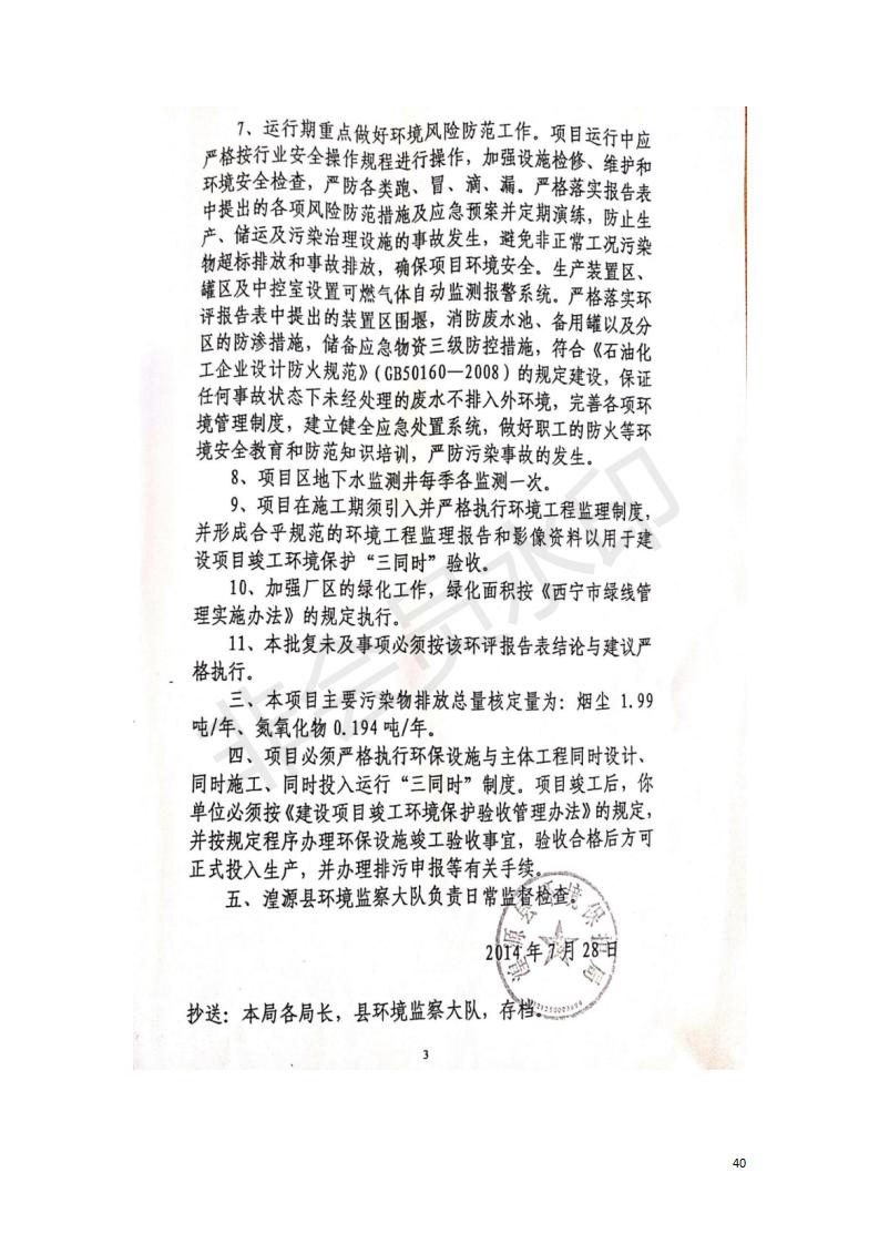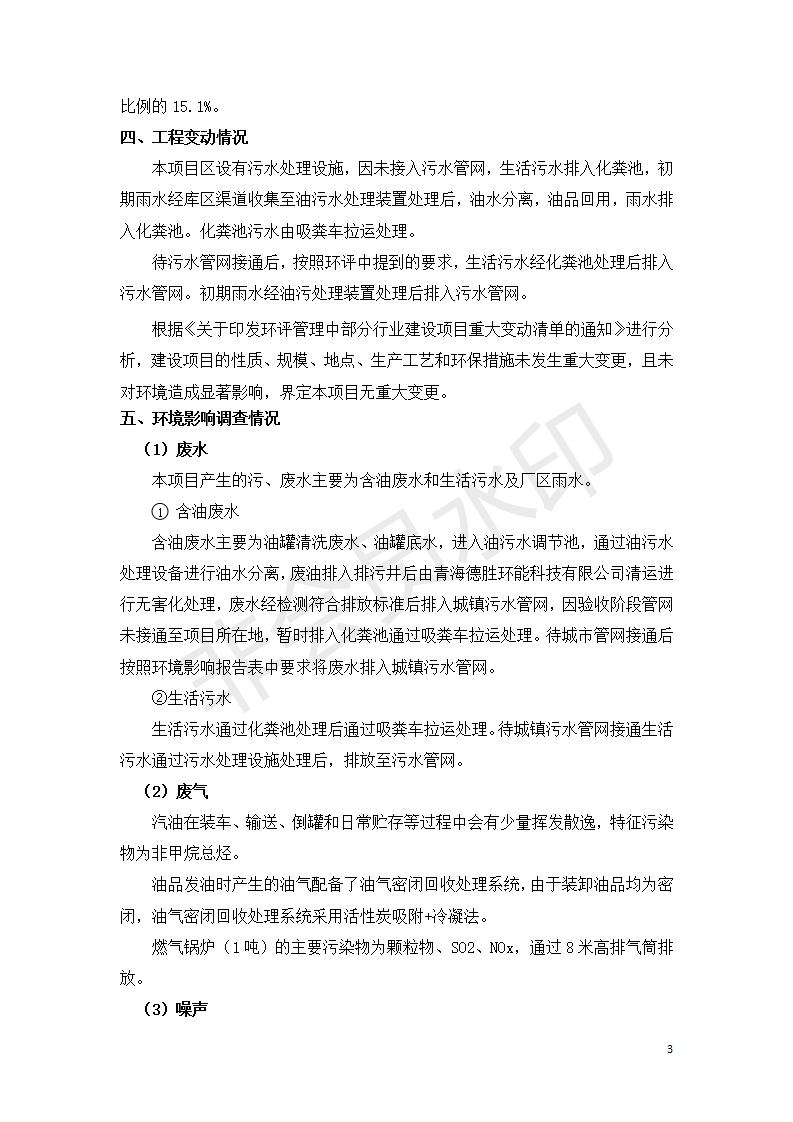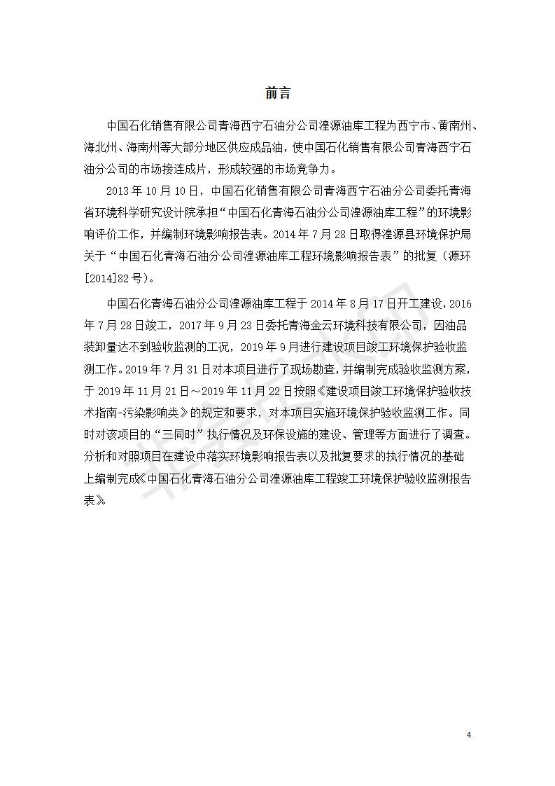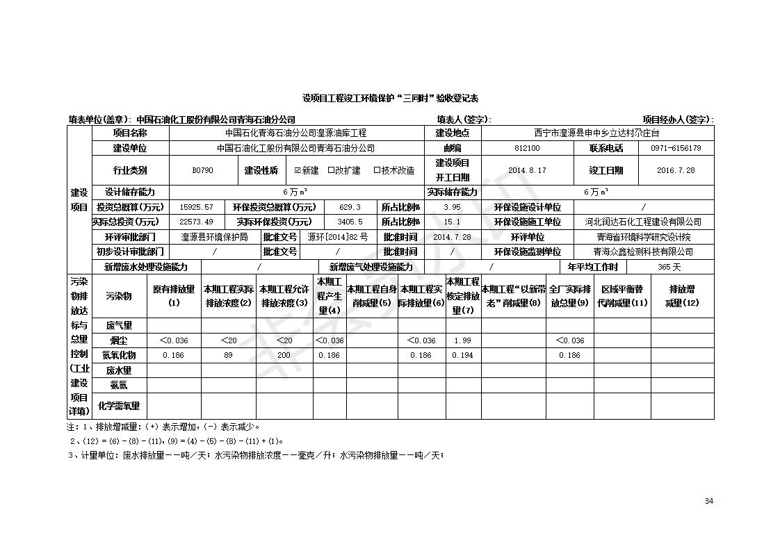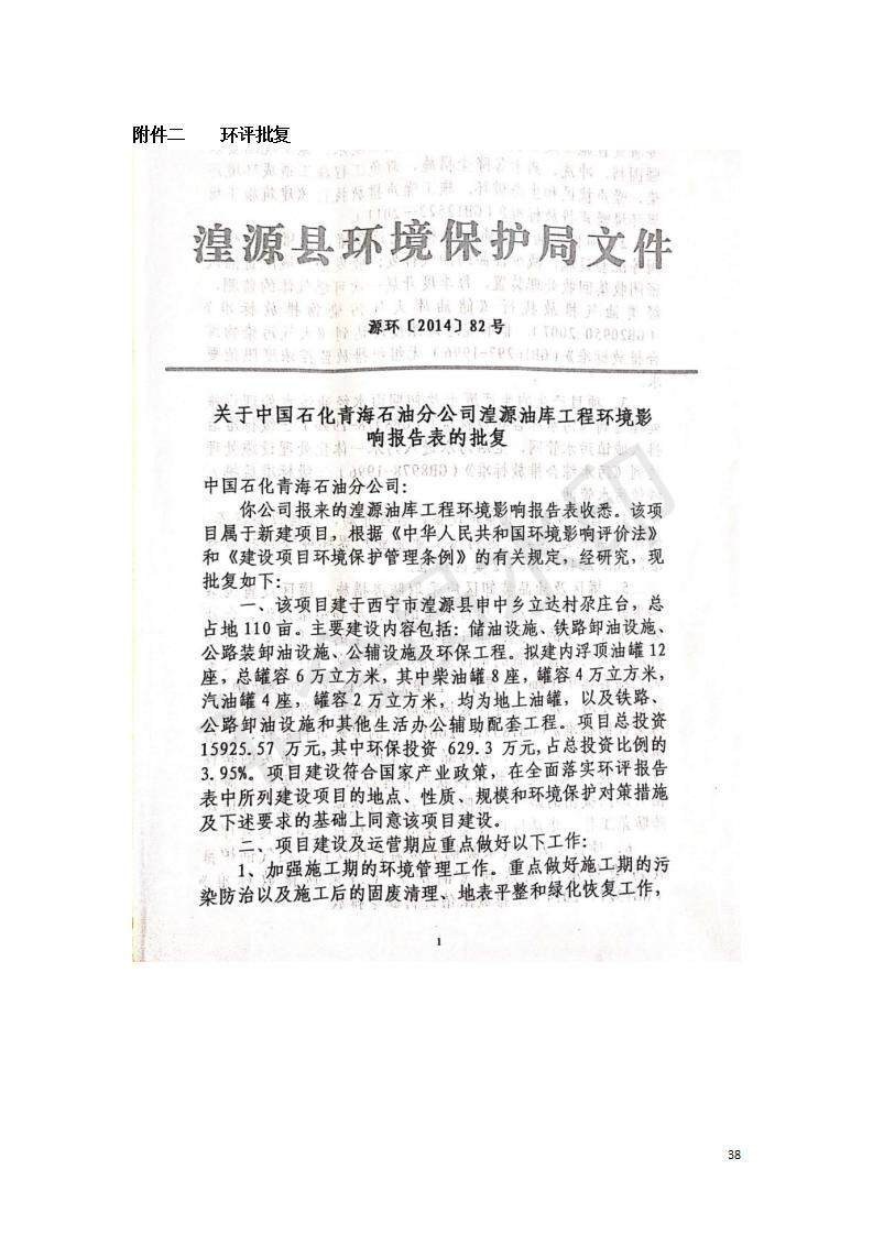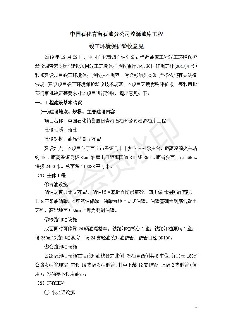 據(jù)中華人民共和國(guó)國(guó)務(wù)院令第682號(hào)《國(guó)務(wù)院關(guān)于修改〈建設(shè)項(xiàng)目環(huán)境保護(hù)管理?xiàng)l例〉的決定》和《建設(shè)項(xiàng)目竣工環(huán)境保護(hù)驗(yàn)收暫行辦法》(國(guó)務(wù)院令682號(hào)),中國(guó)石化青海石油分公司湟源油庫(kù)工程建設(shè)項(xiàng)目(包括竣工環(huán)境保護(hù)驗(yàn)收監(jiān)測(cè)報(bào)告表和驗(yàn)收意見(jiàn))公示如下。 一、項(xiàng)目名稱(chēng):中國(guó)石化青海石油分公司湟源油庫(kù)工程建設(shè)項(xiàng)目 二、地點(diǎn):西寧市湟源縣申中鄉(xiāng)立達(dá)村尕莊臺(tái) 三、建設(shè)單位:中國(guó)石化銷(xiāo)售股份有限公司青海石油分公司 四、建設(shè)內(nèi)容:油品儲(chǔ)量6萬(wàn)m3、其他配套設(shè)施。五、聯(lián)系人:董恒棟 六、聯(lián)系電話:18697130811 七、公示時(shí)間:二〇二〇年三月十三日至二〇二〇年四月十日 公示期間,對(duì)上述公示內(nèi)容如有異議,請(qǐng)以書(shū)面形式反饋,個(gè)人須署真實(shí)姓名,單位須加蓋公章。