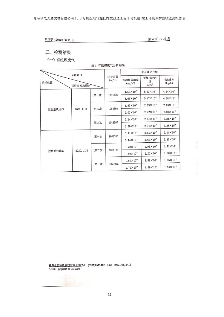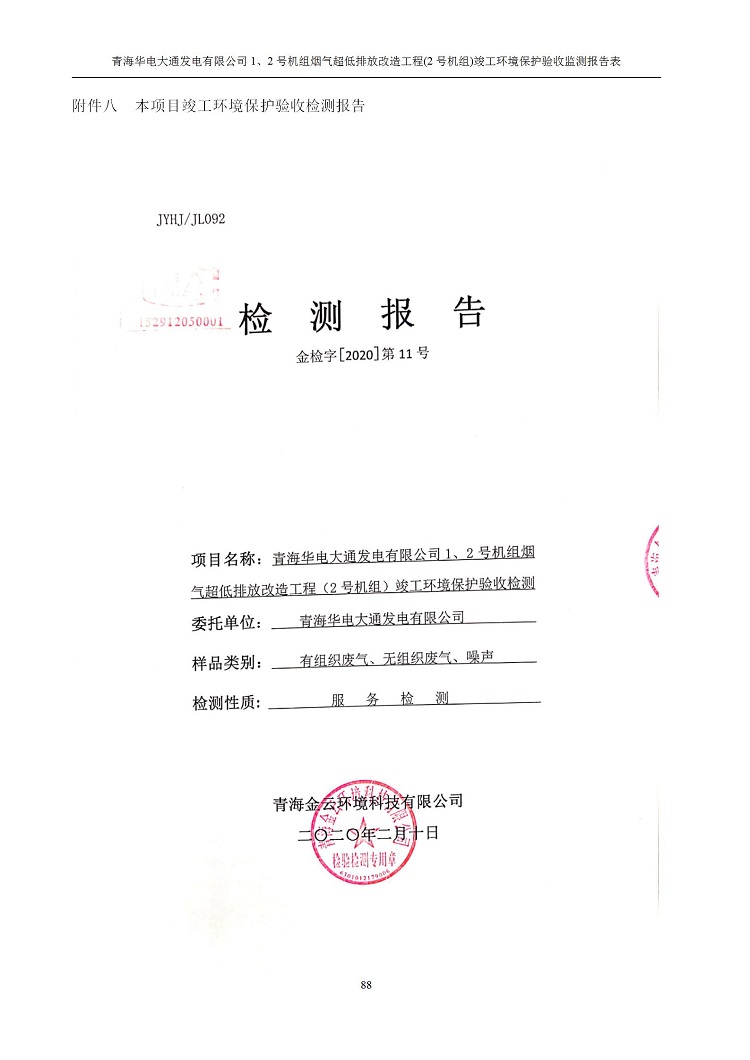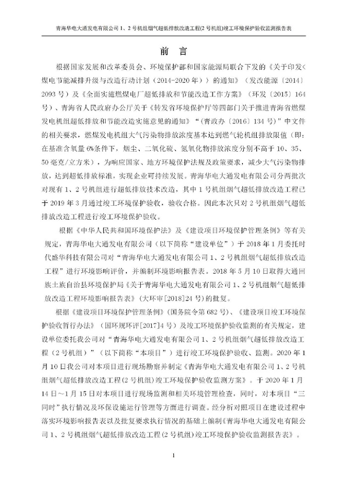 青海華電大通發(fā)電有限公司1、2號機(jī)組煙氣超低排放改造工程(2號機(jī)組) 竣工環(huán)境保護(hù)驗(yàn)收監(jiān)測報(bào)告表公示發(fā)布日期:(2020-4-29) 點(diǎn)擊次數(shù):2531 |