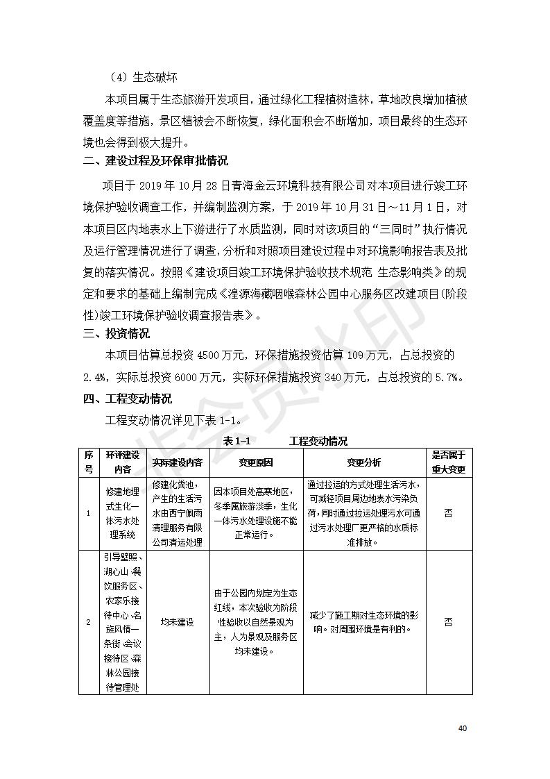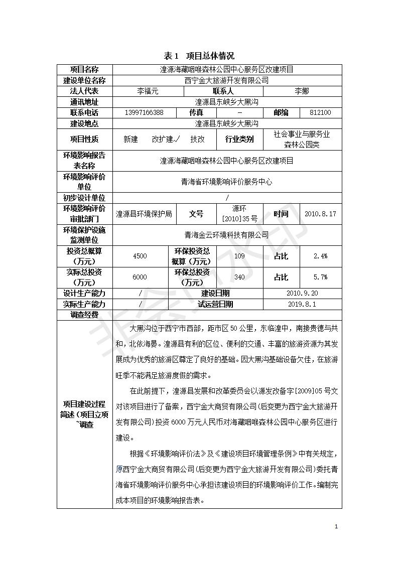 湟源海藏咽喉森林公園中心服務(wù)區(qū)改建項(xiàng)目(階段性)竣工環(huán)境保護(hù)驗(yàn)收調(diào)查表發(fā)布日期:(2020-4-29) 點(diǎn)擊次數(shù):3080 |