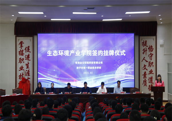 為深入貫徹落實(shí)職業(yè)教育現(xiàn)場(chǎng)推進(jìn)會(huì)精神,深化產(chǎn)教融合校企合作,2023年2月23日,西寧市第一職業(yè)技術(shù)學(xué)校與青海金云環(huán)境科技有限公司隆重舉行校企生態(tài)環(huán)境產(chǎn)業(yè)學(xué)院簽約掛牌儀式。西寧市教育局領(lǐng)導(dǎo),西寧市第一職業(yè)技術(shù)學(xué)校領(lǐng)導(dǎo)及生態(tài)環(huán)境產(chǎn)業(yè)學(xué)院師生,金云科技高層領(lǐng)導(dǎo)出席簽約儀式。儀式由西寧第一職業(yè)技術(shù)學(xué)校黨委書(shū)記、校長(zhǎng)金耀東主持。